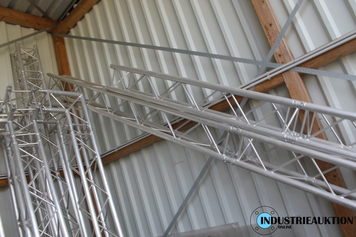 4-Punkt-Traversensystem PROLYTE, 4x 2,50 m-Stücke, 4 x. 3,00 m-Stücke, 5 x 50 cm-Stücke, 2 x 2,00 m-Stück, Winkel und Bodenplatten