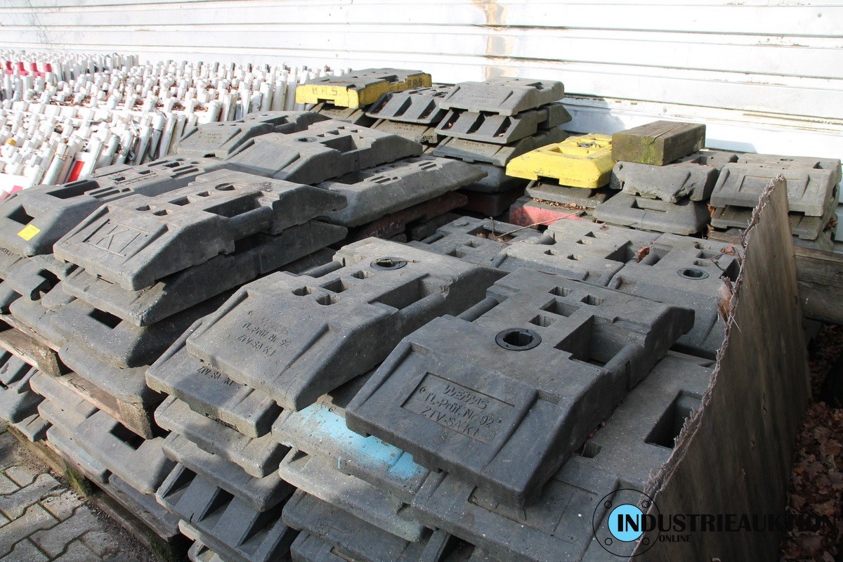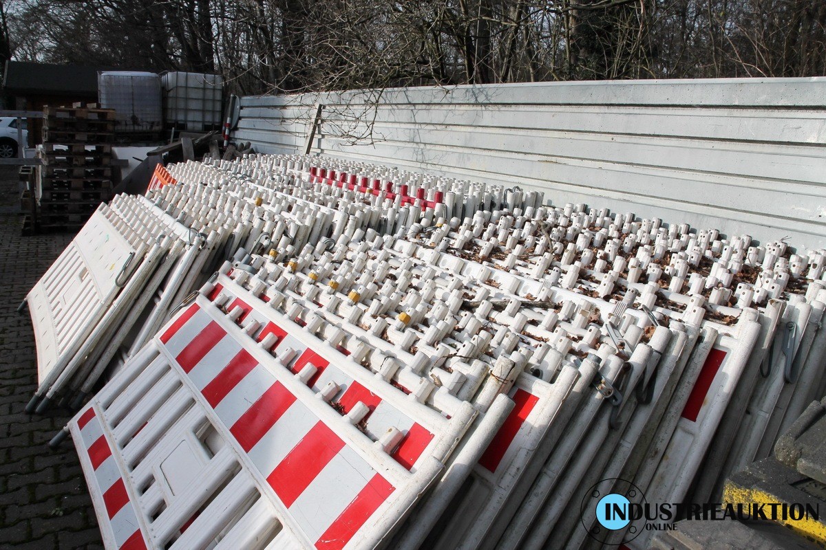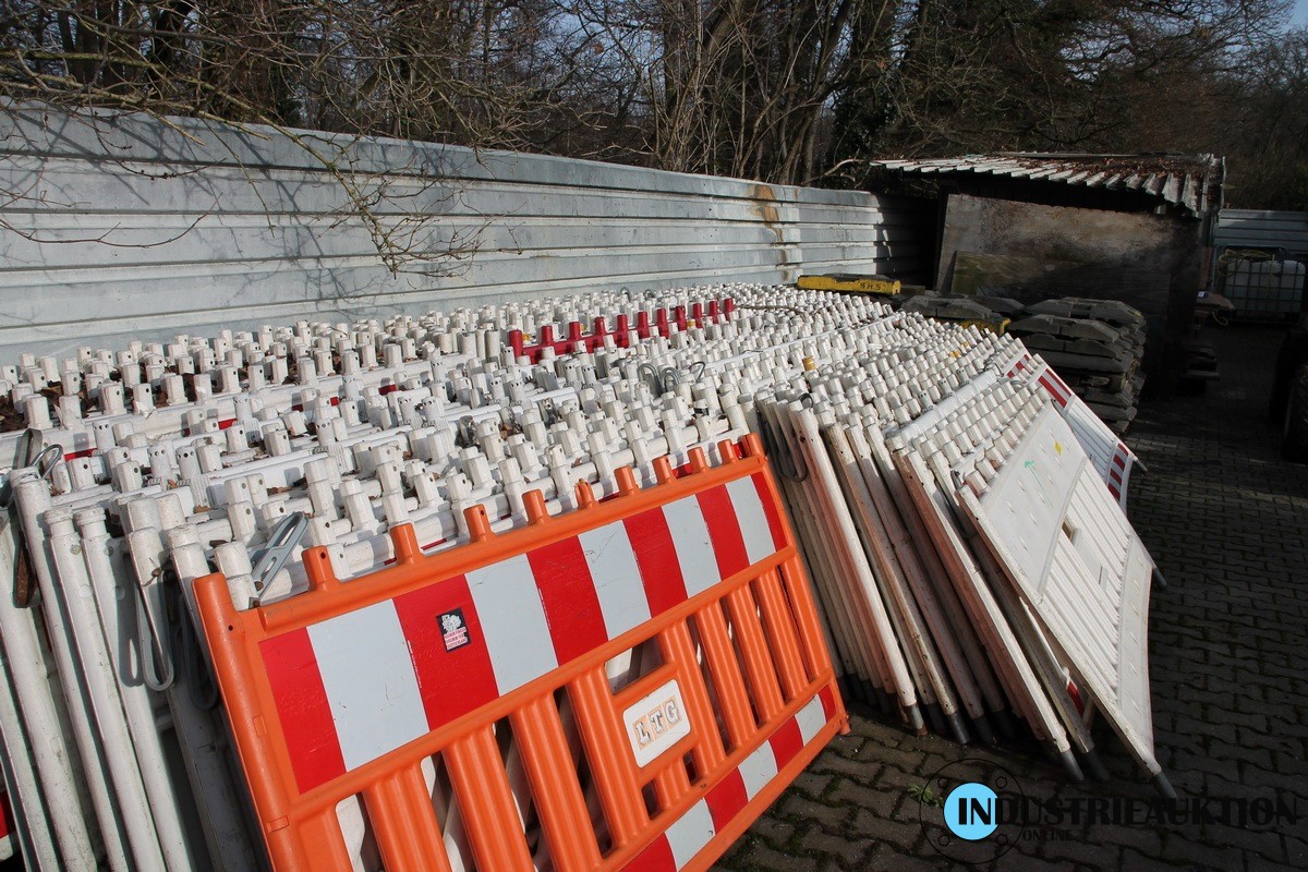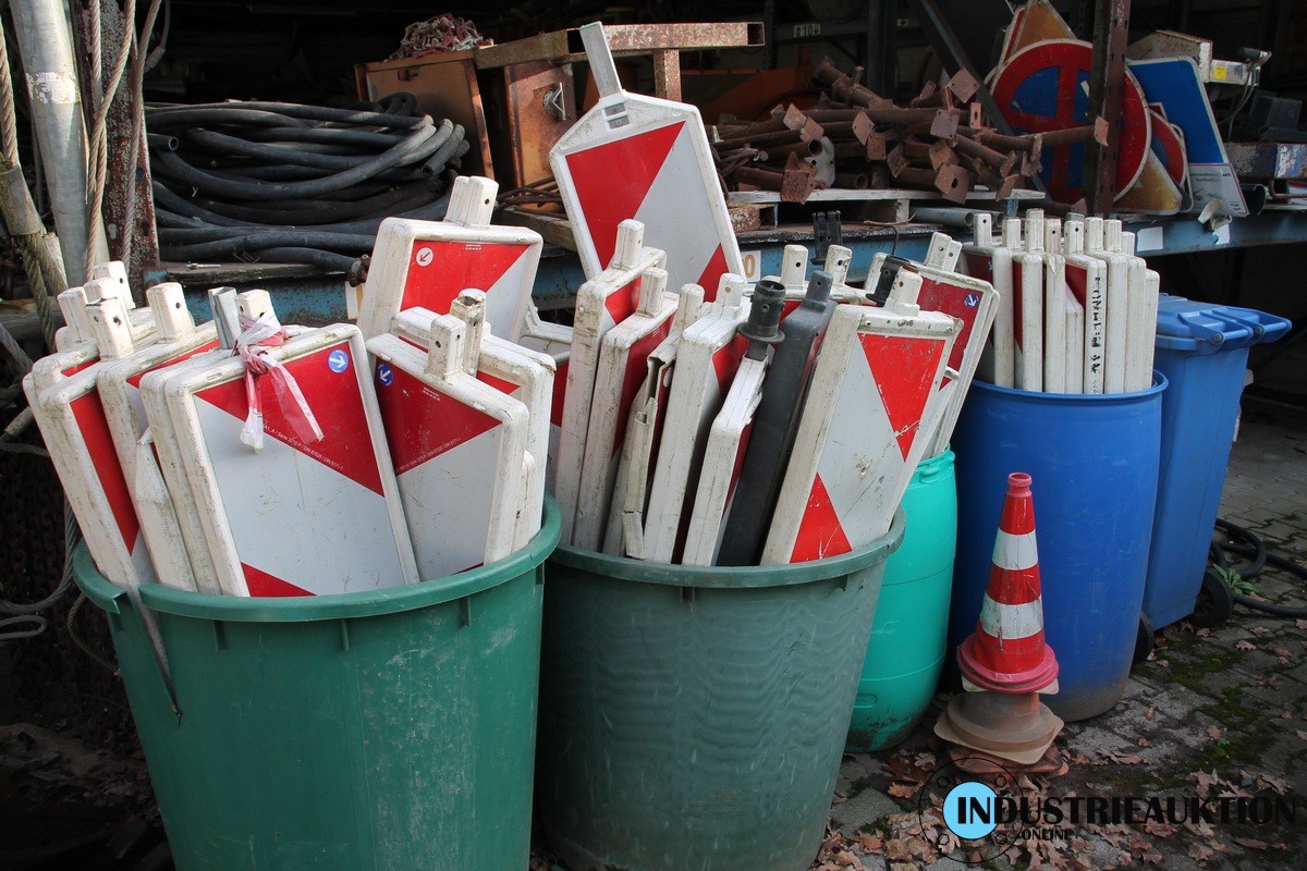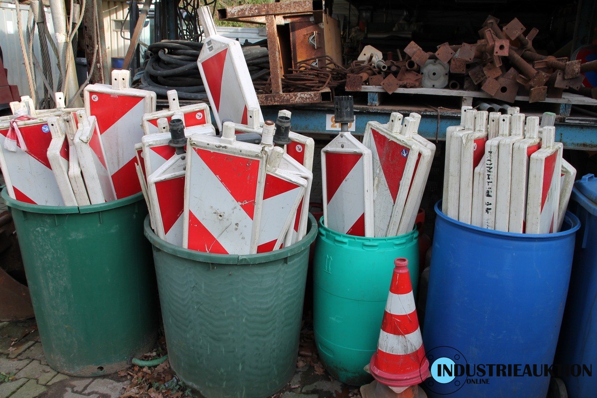 Absperrungen ca. 90 St., Warnbaken, Pylonen, Verkehrsschilder, Baustellenfüße
