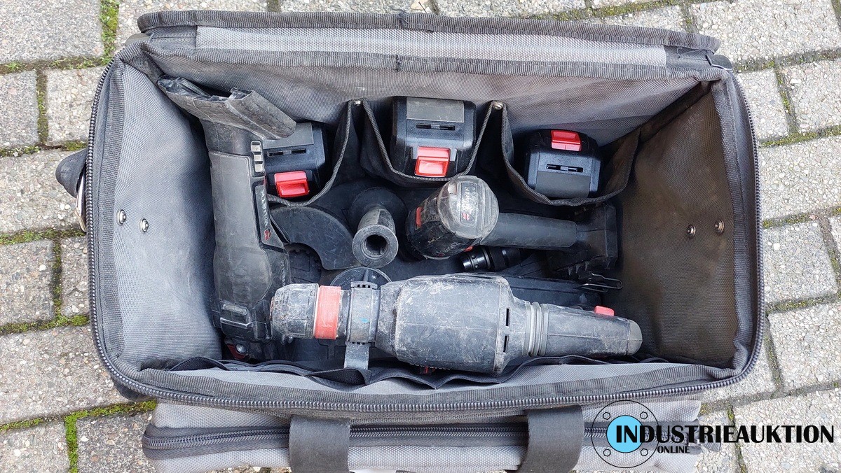 Akku-Maschinensatz ABS/ABH/AWS + Tasche, Bj. 24, Akku-Bohrschrauber ABS 18 compact, Akku-Bohrhammer ABH 18 Compact, Akku-Winkelschleifer AWS 18-125 Compact, Ladegerät M-Cube 18V, 3 Li-Ion Akkus 18V/5AH, gebraucht
