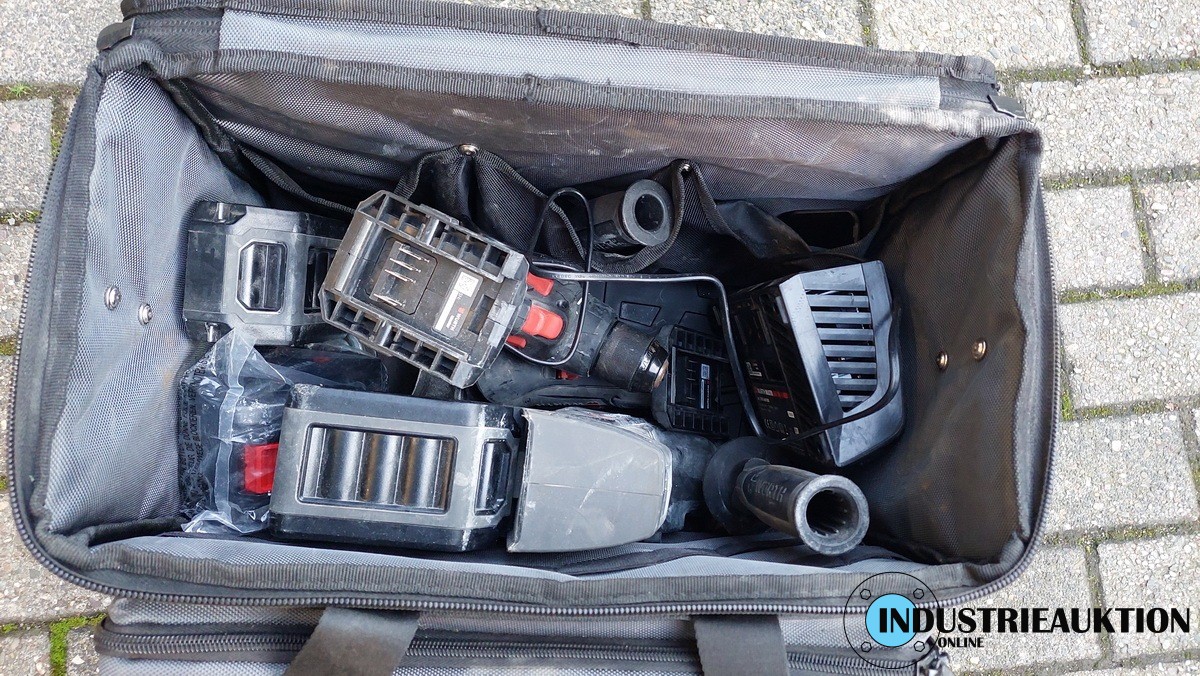 Akku-Maschinensatz ABS/ABH/AWS + Tasche, Bj. 24, Akku-Bohrschrauber ABS 18 compact, Akku-Bohrhammer ABH 18 Compact, Akku-Winkelschleifer AWS 18-125 Compact, Ladegerät M-Cube 18V, 3 Li-Ion Akkus 18V/5AH, gebraucht