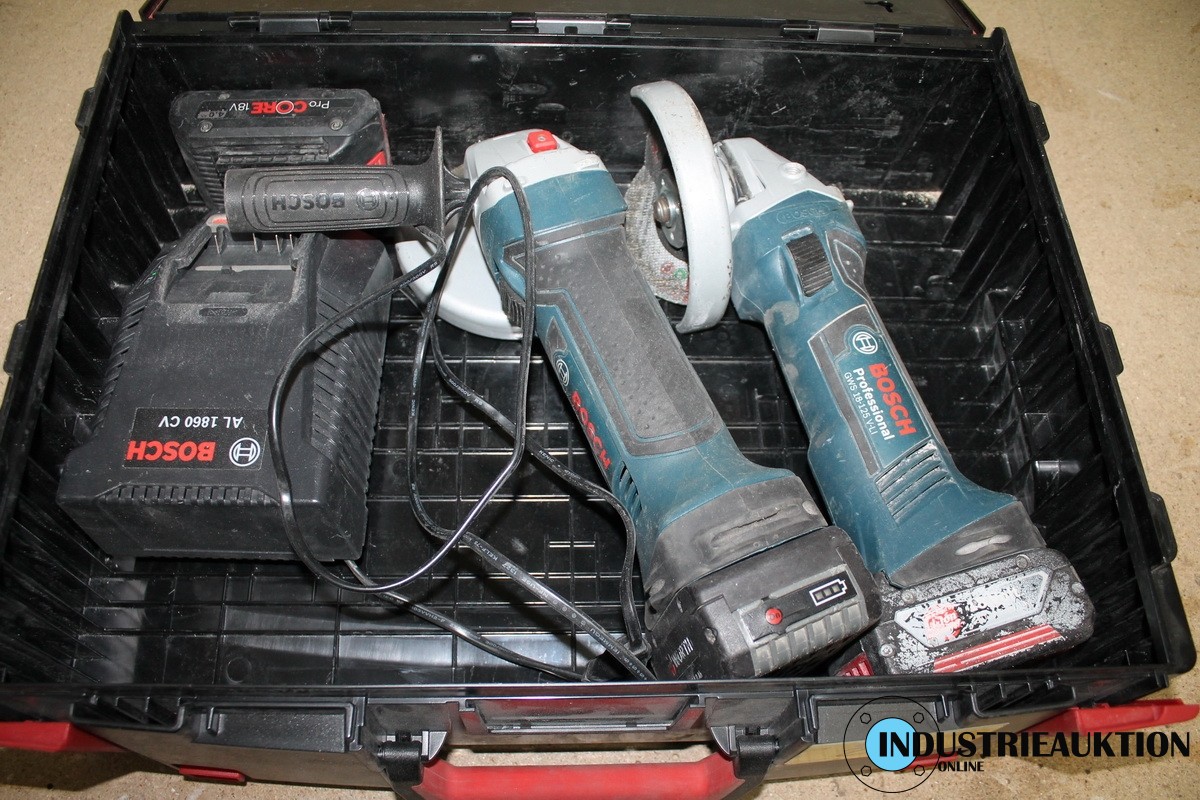 Akku-Winkelschleifer BOSCH GBS 18-125 VLI 2 St., mit 3 Akkus und Ladegerät