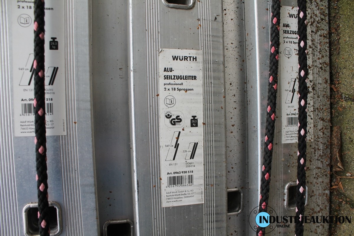 Alu-Seilzugleiter WÜRTH, 2x18 Sprossen, 526 - 949 cm