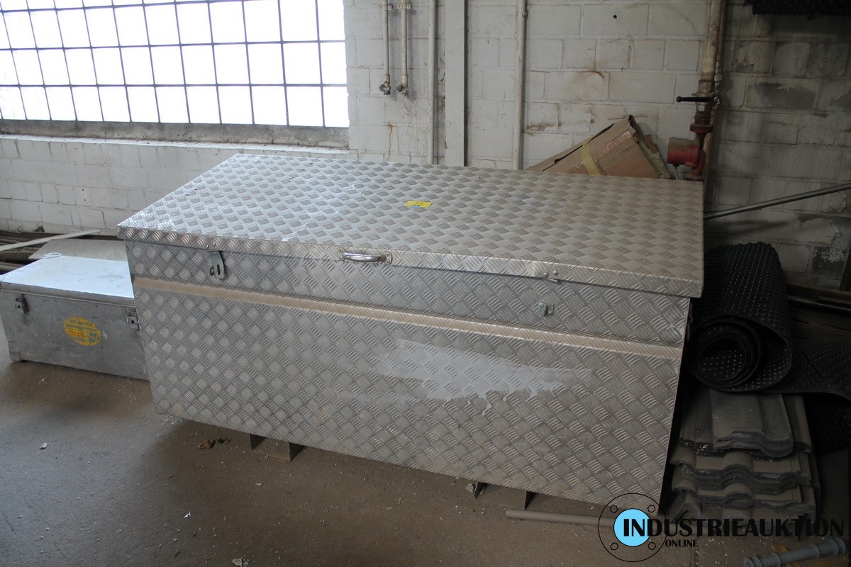 Aluminiumkiste, ca. 190x80 cm, reparaturbedürftig, Deckel ist lose