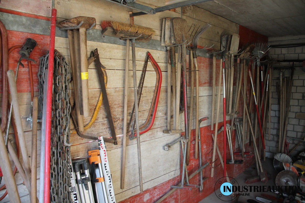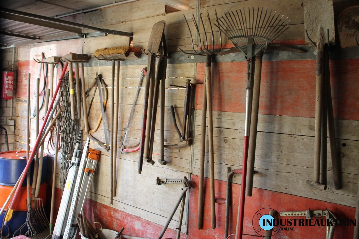 Div. Geräte, Besen, Vorschlaghämmer, Spaten, Rechen, Schaufeln, Harken, gesamt ca. 70 St.