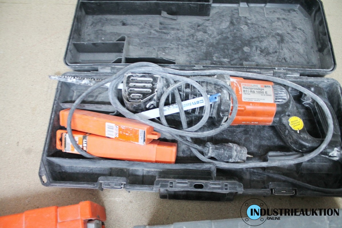 Einhandwinkelschleifer BTI, Reziprosäge BTI RS 10 50 E sowie Bohrhammer BTI, BH 2-25 ME