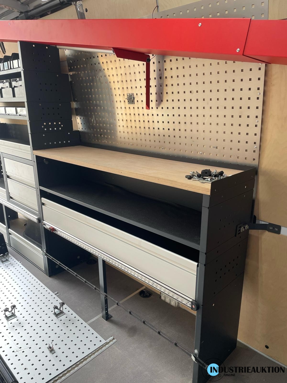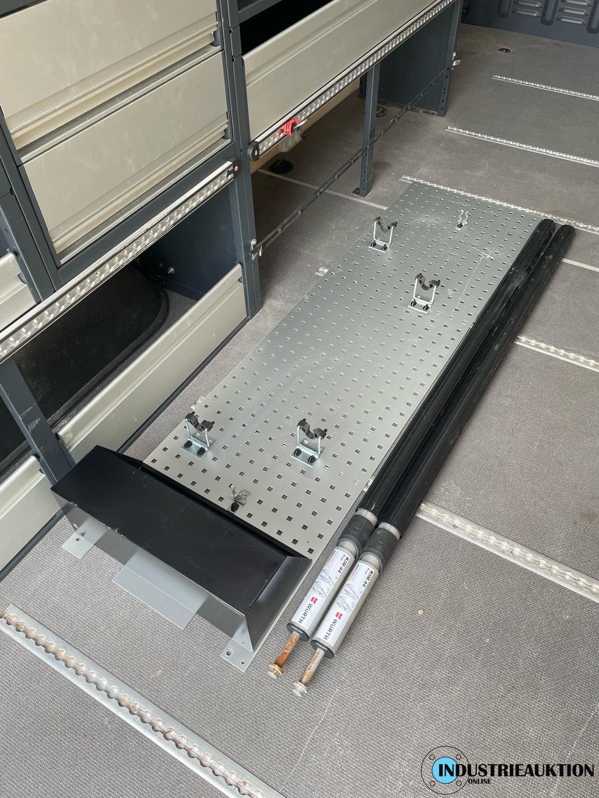 Fahrzeugregale WÜRTH, 2 Stk., ausgebaut aus Sprinter lang, 2 Spannstangen, Lochwand, Langgutwanne, Kleinteilekästen, guterZustand, aus 2022