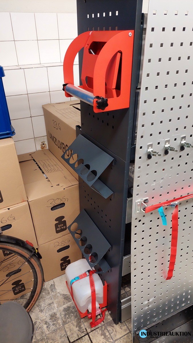 Fahrzeugregale WÜRTH, 2 St., aus Sprinter lang/hoch, 2 Modulblöcke mit Schubladen, jeweils B=ca. 140cm, H=166cm, 2x Dosenhalter, Papierabroller, Rasterwand, Langgutwanne, Wasserkanister mit Halter, Stapelkästen, 4 WÜRTH-Spannstangen, Montagematerial, neuwertig, aus 2024, NP ca. 3.600€