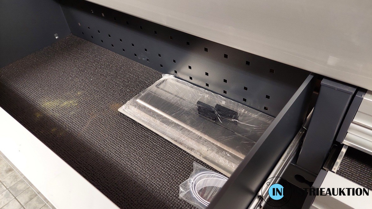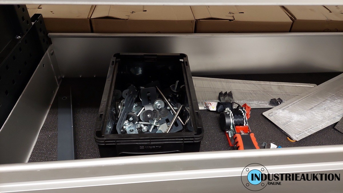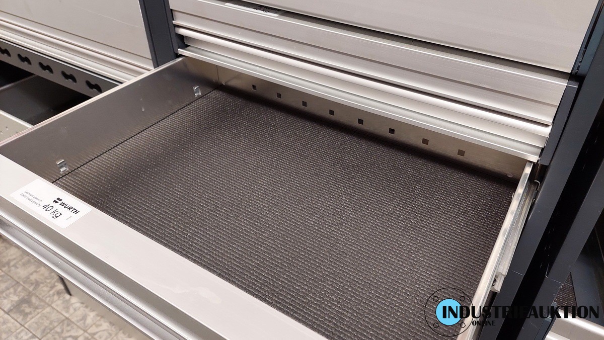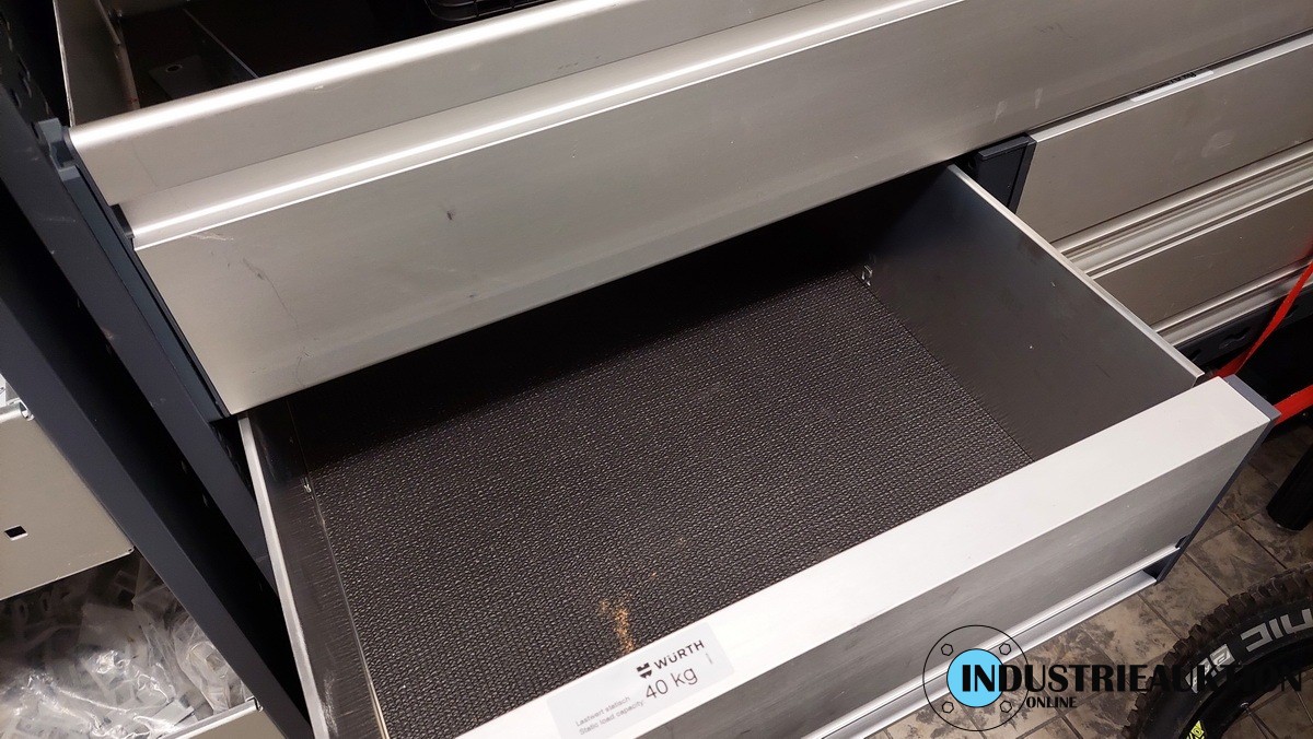 Fahrzeugregale WÜRTH, 2 St., aus Sprinter lang/hoch, 2 Modulblöcke mit Schubladen, jeweils B=ca. 140cm, H=166cm, 2x Dosenhalter, Papierabroller, Rasterwand, Langgutwanne, Wasserkanister mit Halter, Stapelkästen, 4 WÜRTH-Spannstangen, Montagematerial, neuwertig, aus 2024, NP ca. 3.600€