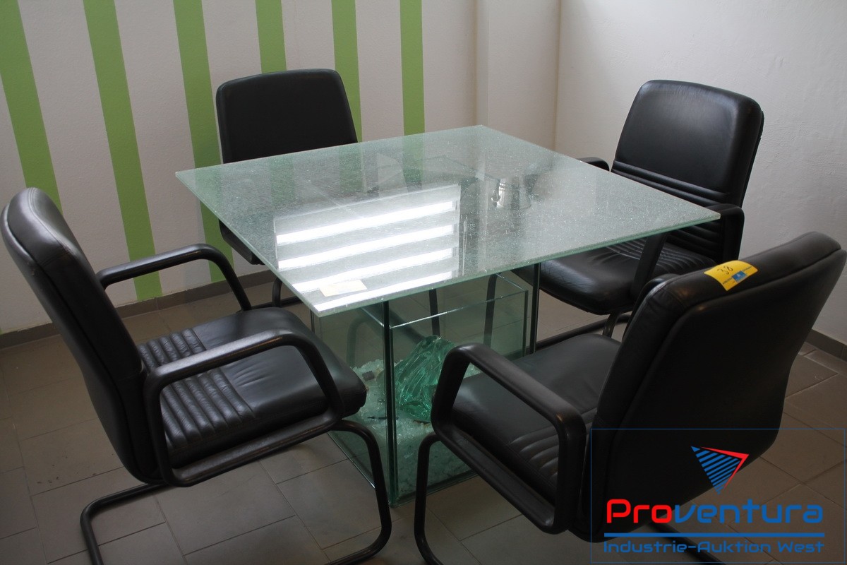Konferenztisch, mit Crash-Glasplatte, 4 Freischwinger Kunstleder