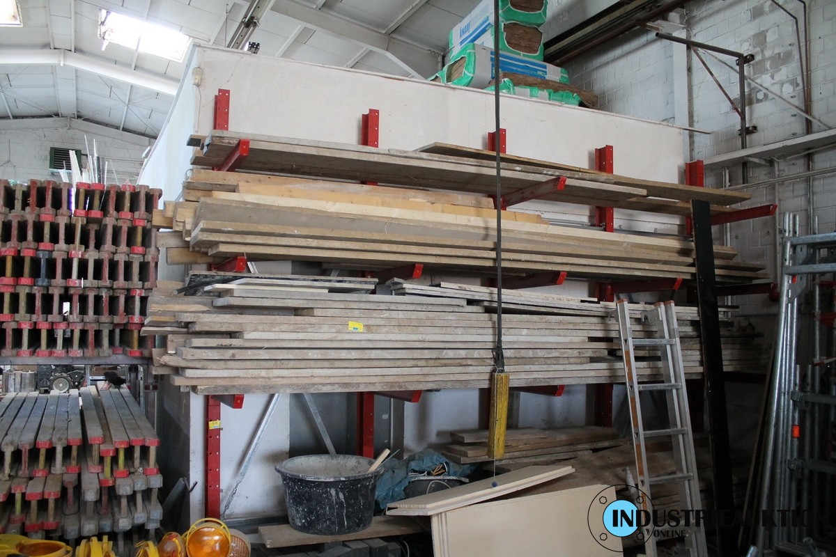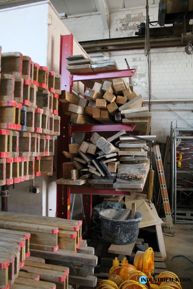 Kragarmregal CELSA, Ausladung ca. 800 mm, 3 Etagen, Gesamtlänge ca. 4 m, Höhe ca. 3 m, 5 Ständer - Demontage 23.05.2022
