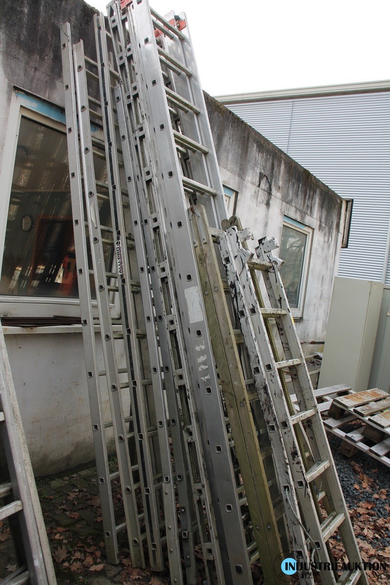 Leitern, ca. 15 St., Anlegeleiter, Klappleitern, Schiebeleitern, div. Größen und Materialien