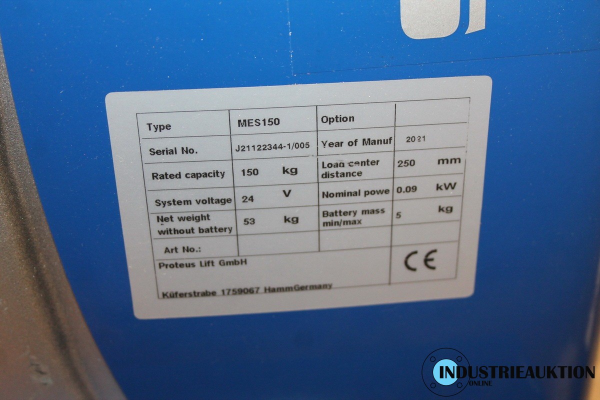 Materialheber PROTEUS Lift MES-150, Bj.21, Tragkraft 150kg, Batteriebetrieb, ohne Ladegerät, Funktion geprüft