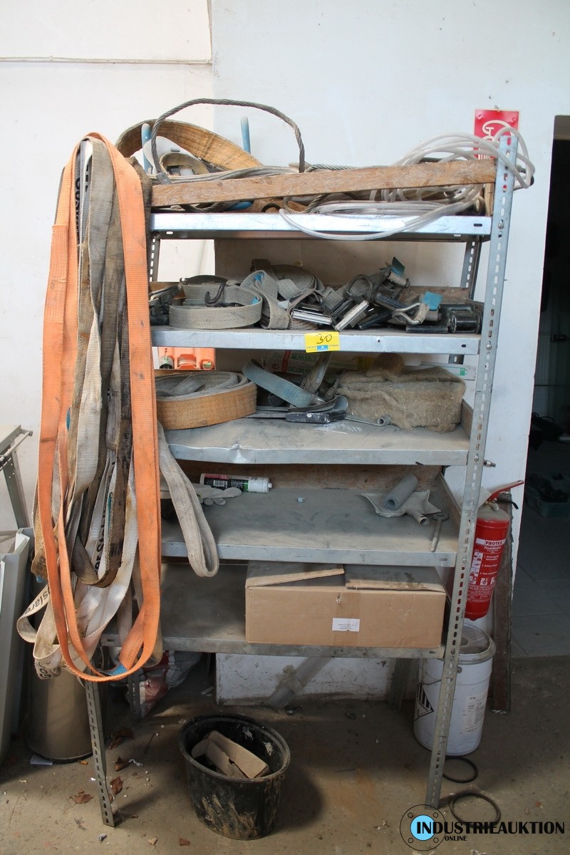 Metallregal ca. 100x190 cm, verbogen, Inhalt: ältere Spanngurte, diverse Schlups