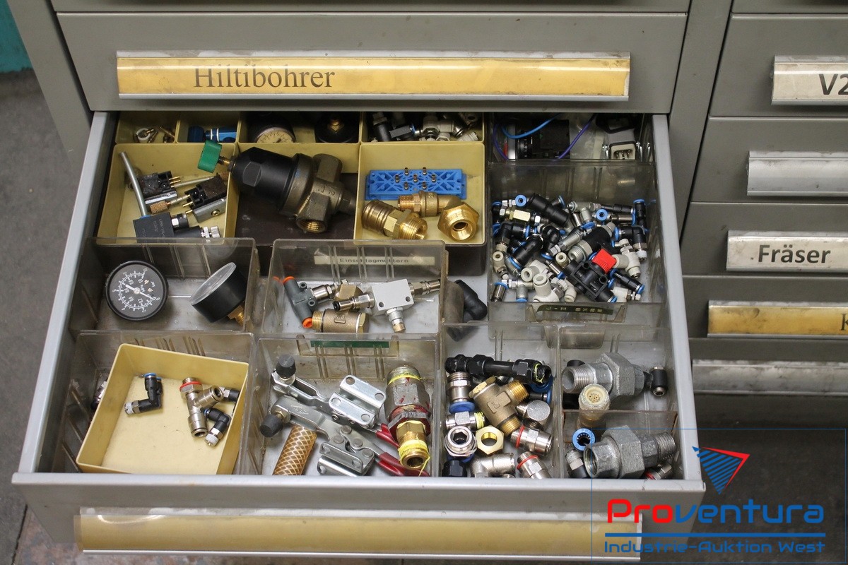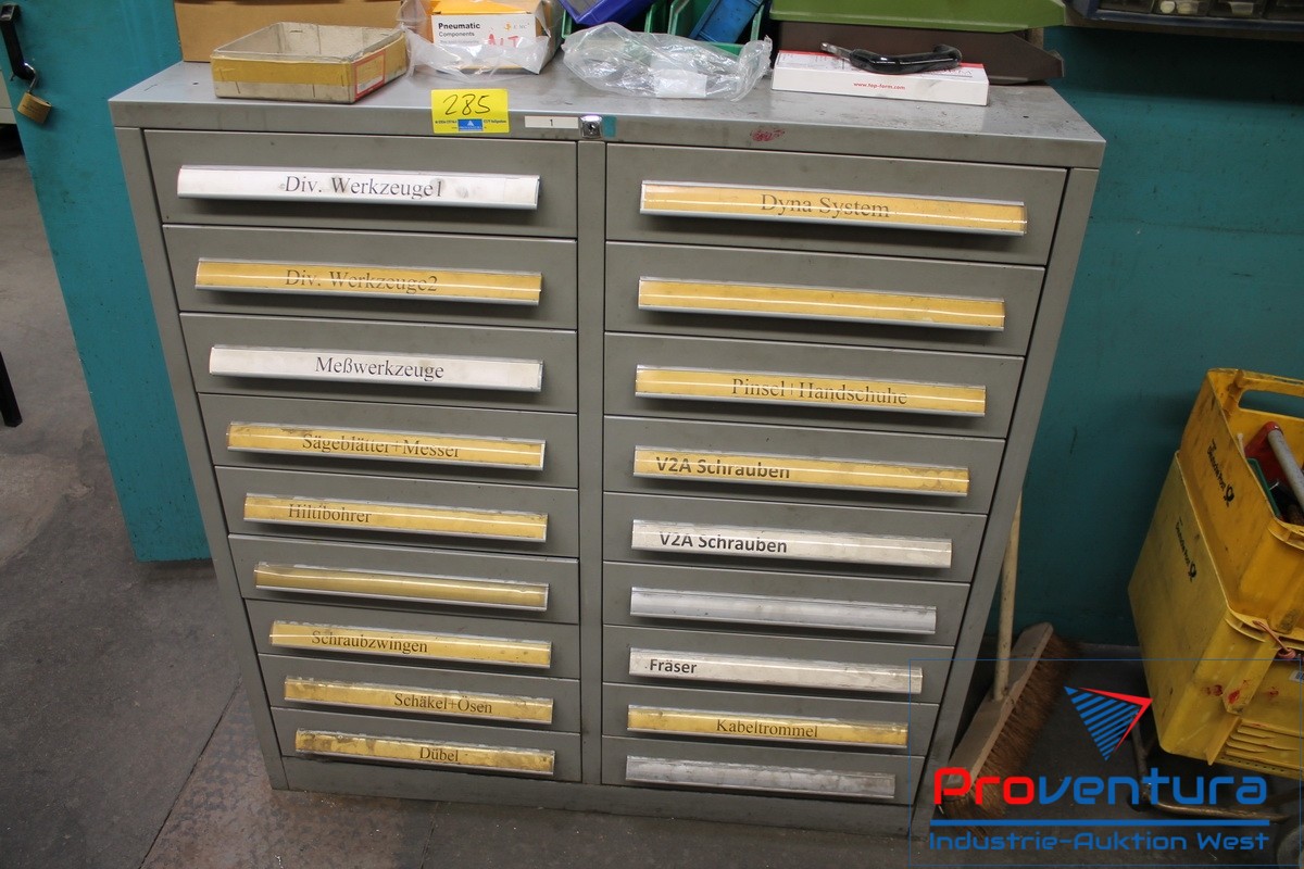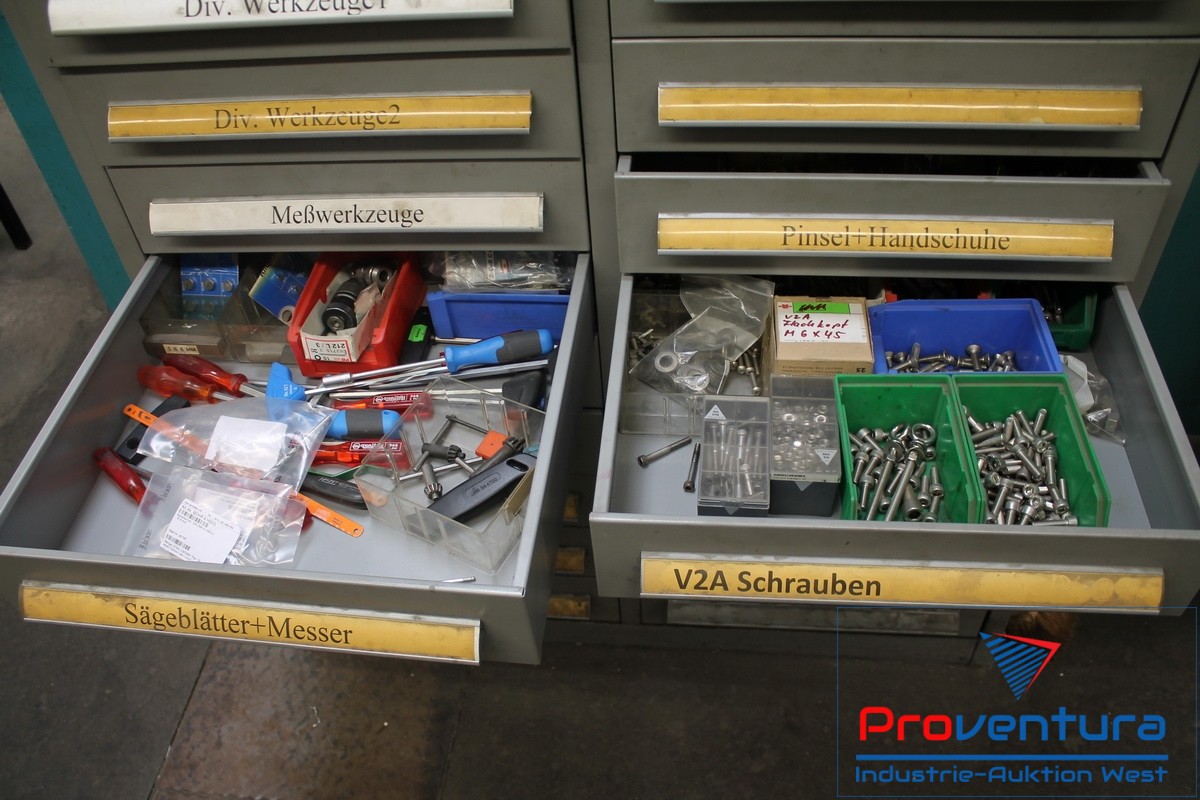Metallschränke, 2 St., je 9 Schübe, Inhalt Kleinteile, Werkzeug