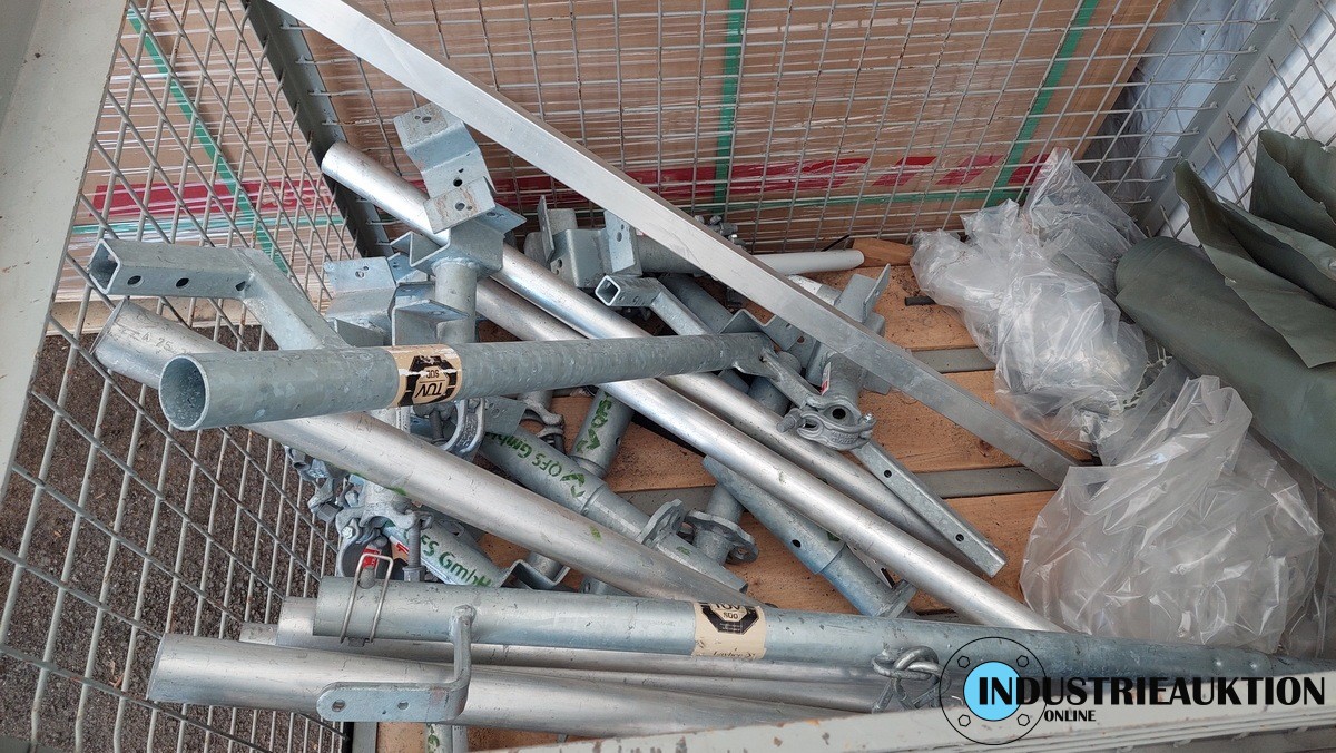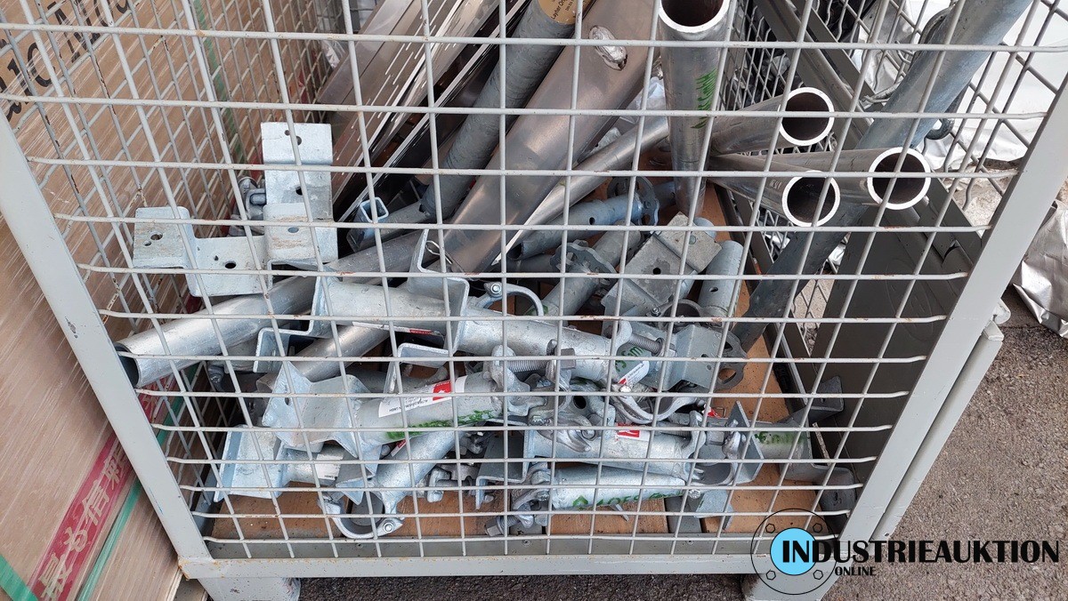 Ortgang-Sicherung, 8x Geländerelement 3m, Gitterbox mit Zubehör, Vollständigkeit nicht bekannt