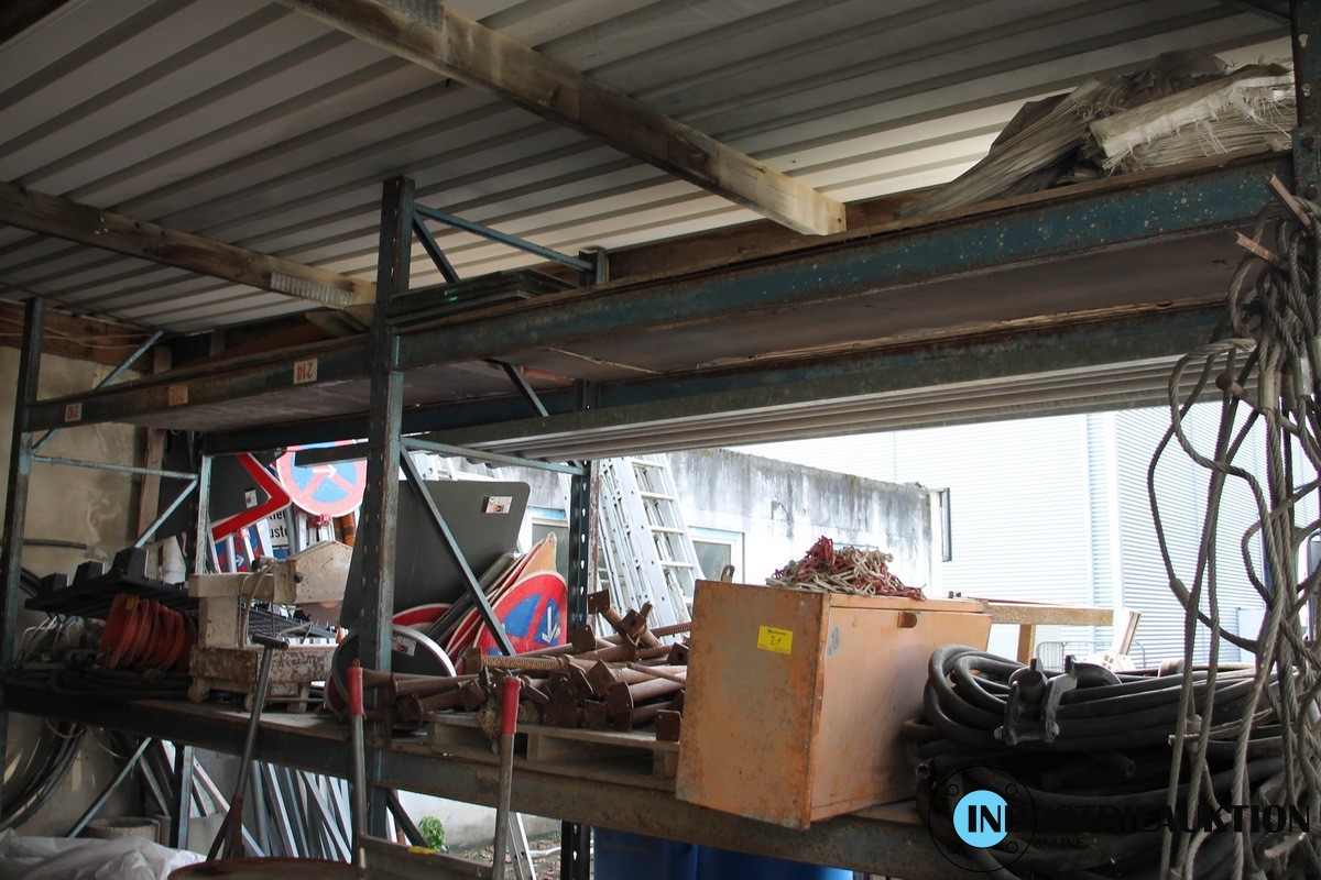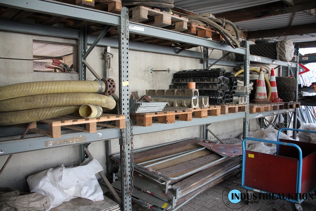 Paletten-Schwerlastregal, 5 Felder, mit Inhalt (Ausnahme: Gegenstände mit aufgeklebten Nummern)