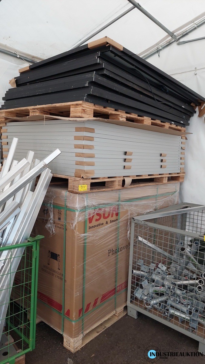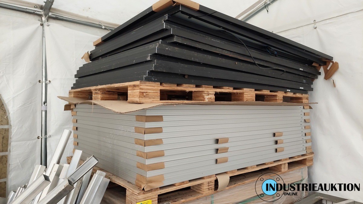 Pos. Solarmodule, 1 Palette VSUN, vermutlich 36 St., 29 andere Module, sowie einige in der Halle. Module ca. 420W