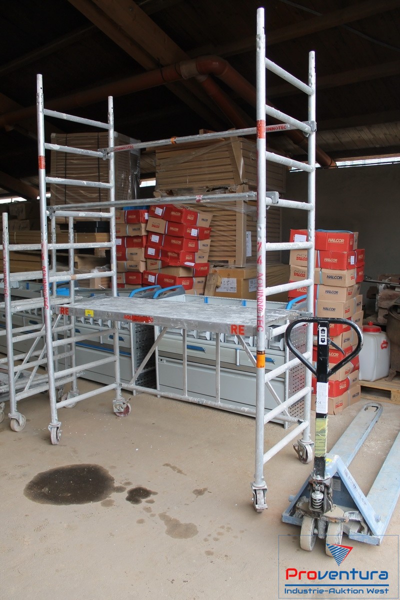 Rollgerüst LAYHER, vermutl. ZIFA P2, Breite 0,75, Klapprahmen, 4 Rollen, Boden, 2 Standleiter 75/4, 2 Streben