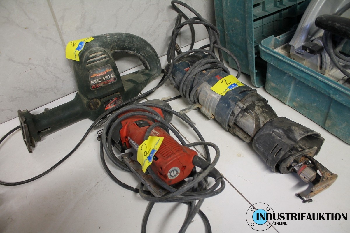 Säbelsäge BOSCH, Stichsäge HILTI WSJ 850 EU, Aligatorsäge KINGCRAFT, teilweise reparaturbedürftig