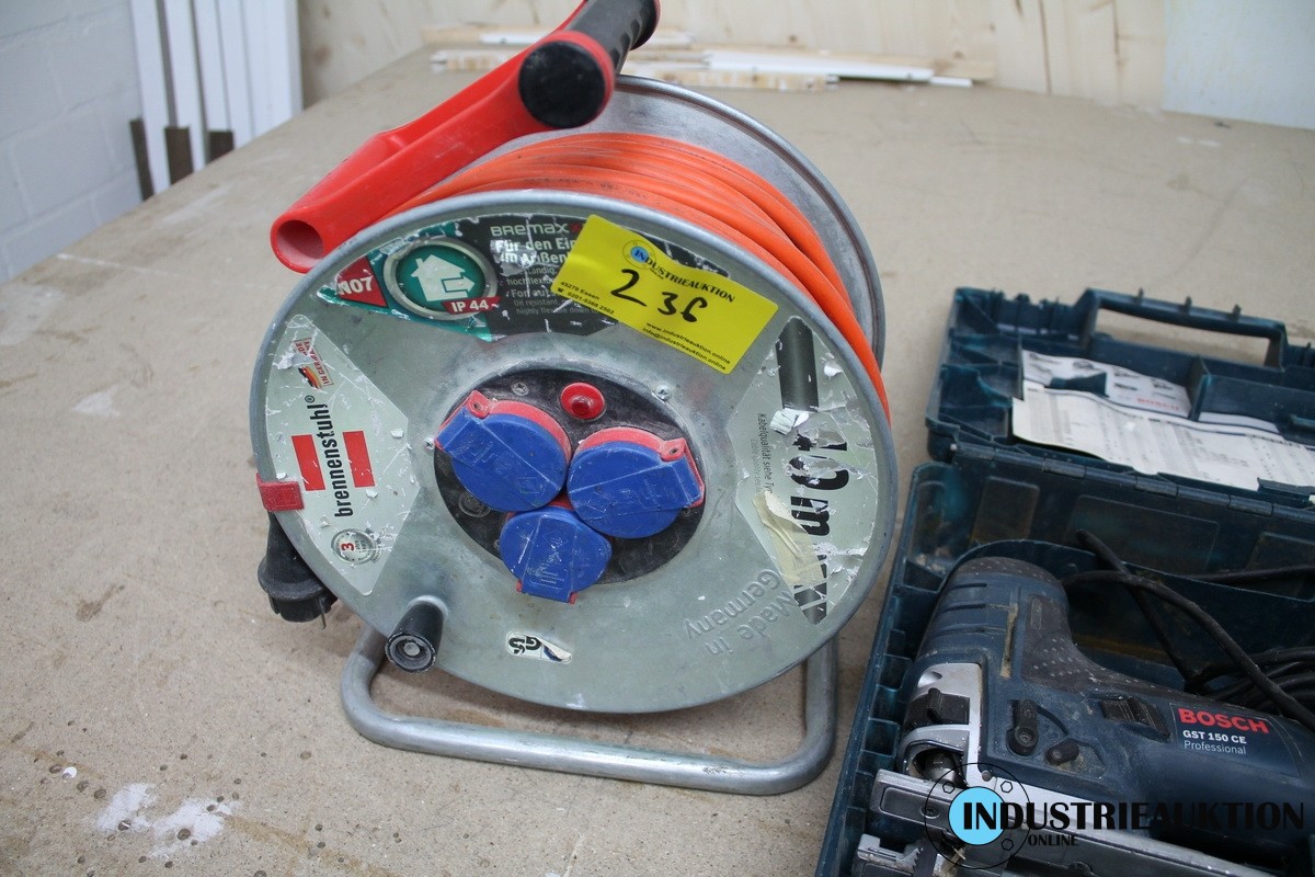 Stichsäge BOSCH GST 150 CE, mit Kabeltrommel BRENNENSTUHL 40 m