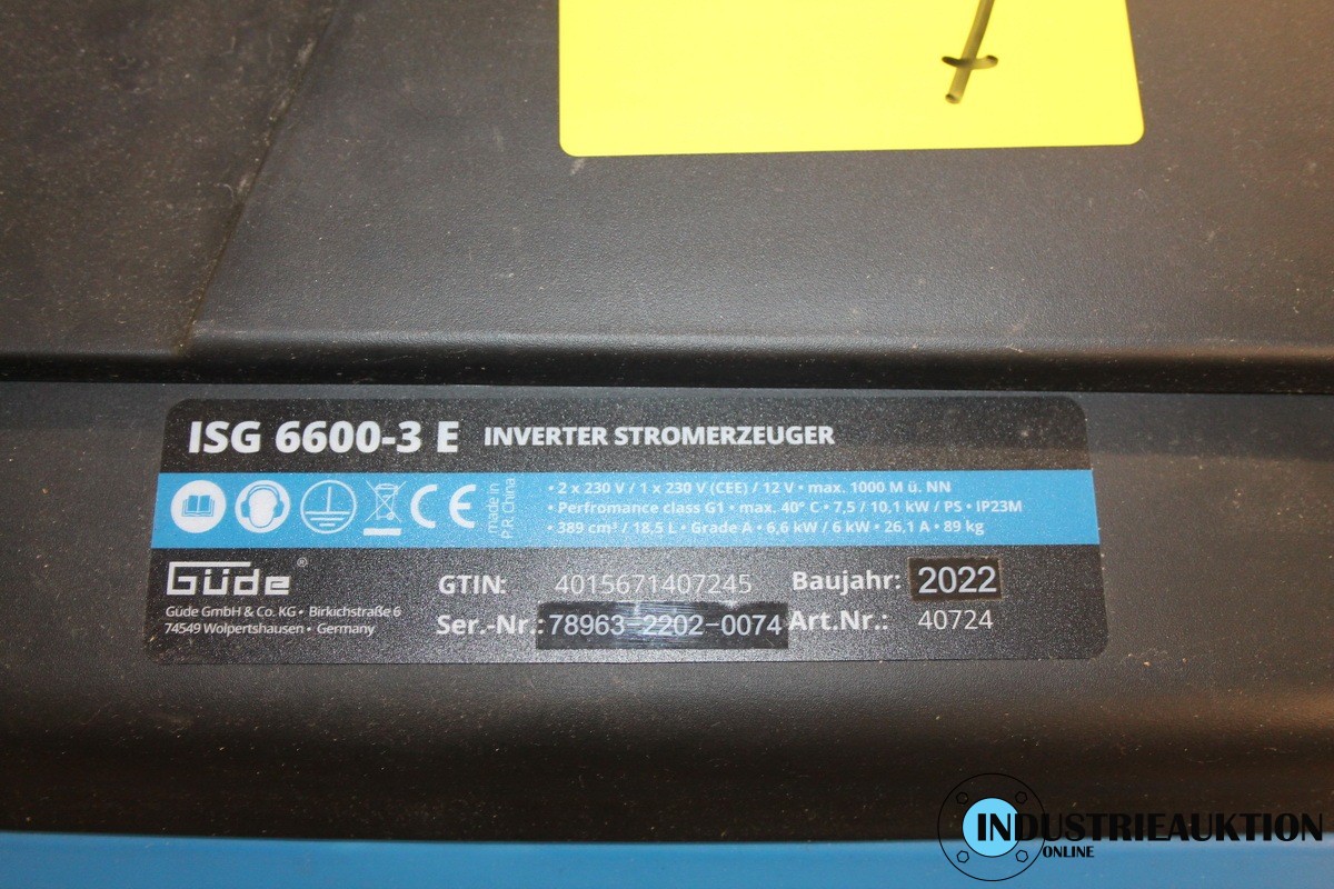 Stromerzeuger GÜDE ISG 6600-3 E, Bj. 22, 230V, 12V, 7,5kW Benzinmotor, 389cm³, 18,5L Tank, 6000W, optisch neuwertig