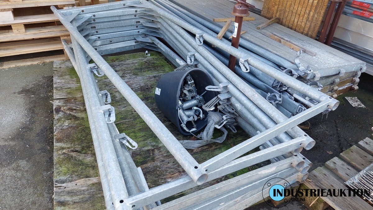 Treppenturm LAYHER, 24 Ständer, 4 Böden 250cm, 8 Alu-Treppen, Geländer, Höhe ca. 10m,