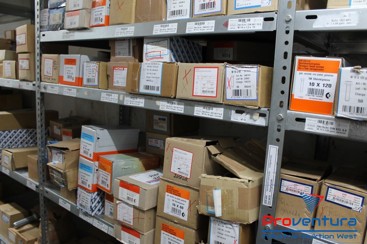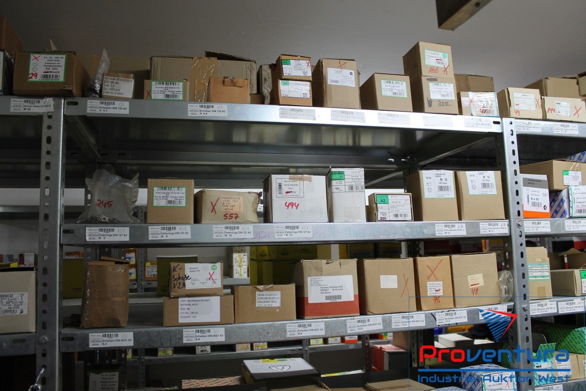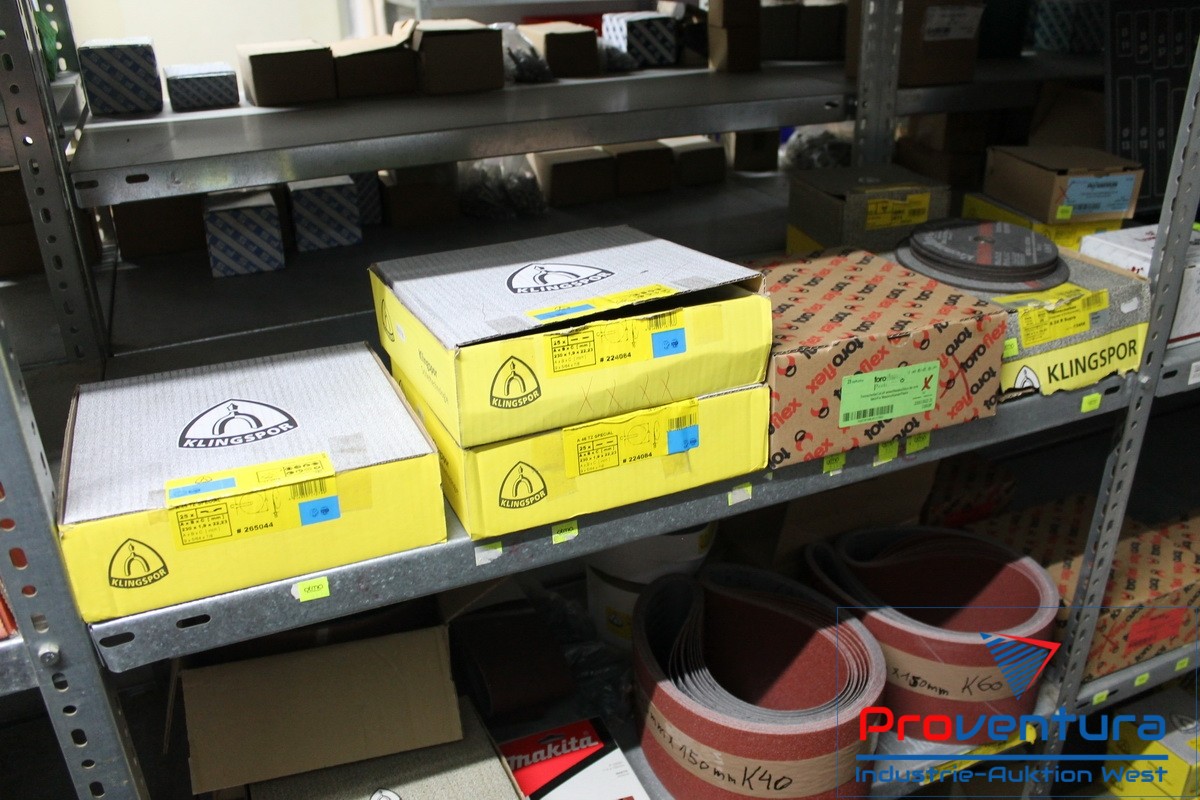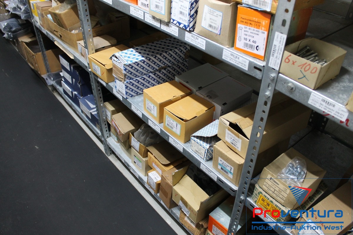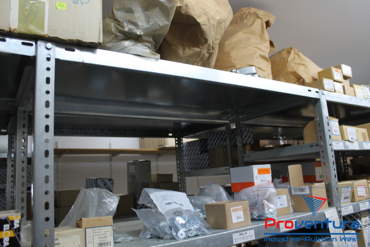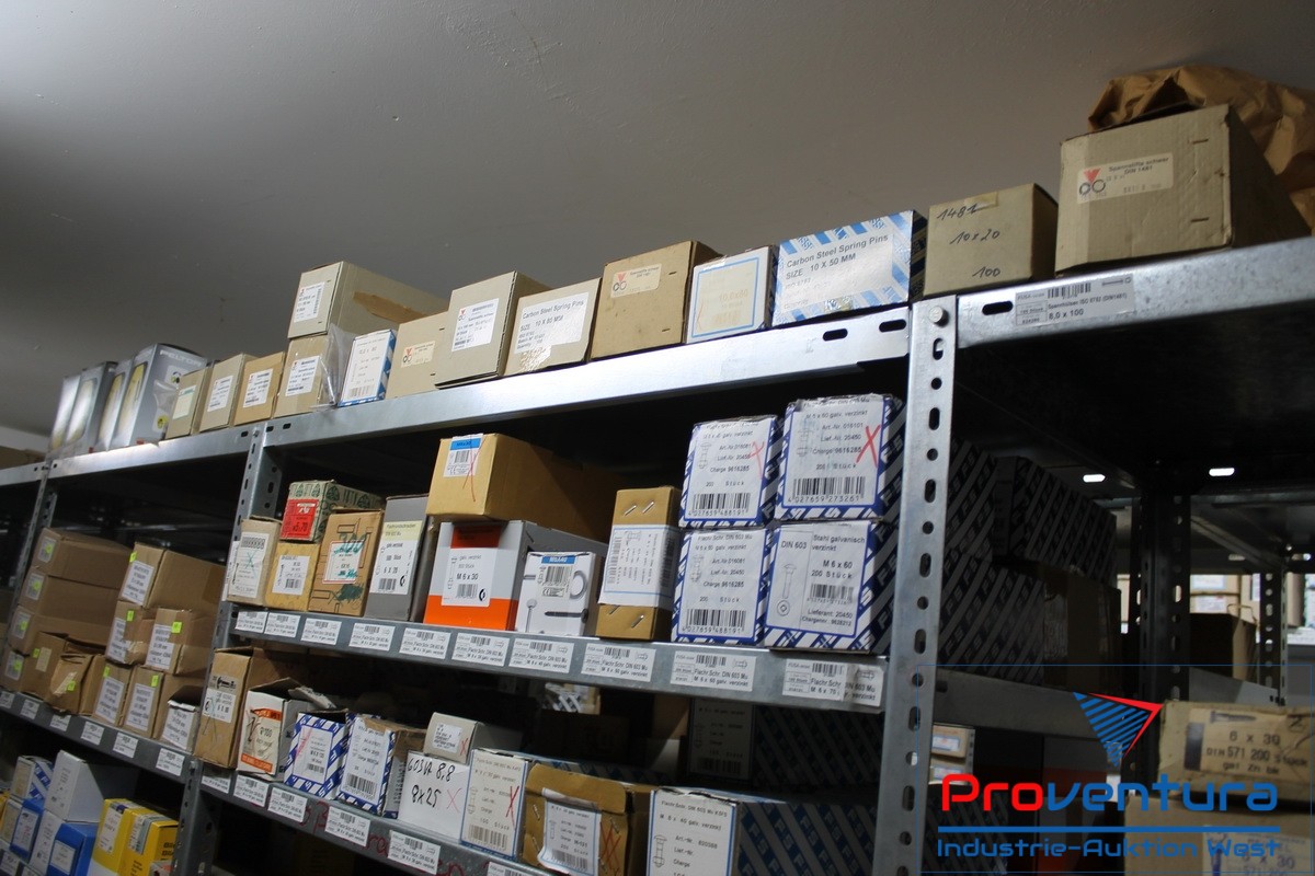 Warenbestände, lagernd in 49 Regalen, Schweißdraht, Bohrer, Sägeblätter, Werkzeug, Wasserwagen, Ketten, Spanngurte, Drahtbürsten, Stecknüsse, Feilen, Imbusschlüssel, Meißel, Metallwinkel, div. Lochwinkel, Winkelverbinder, Muttern, Sicherungsmuttern, Gewindestangen, Blechschrauben, Unterlegscheiben, Federringe, Schrauben, teilw, Edelstahl, Dübel FISCHER und UPAT, Nägel, Trennscheiben, Schleifbänder, Handschuhe in div. Ausführungen und Größen, Kabelbinder, Gehörschutz, Schellen, 120 l Frostschutzmittel, Einschlagmuttern, Bauschaum, Lecksuchspray, Pistolenschaum, Schmiermittel, Markierungsspray, Schraubensicherung, Bohr- und Schneidöl, Silikon, Kriechöl, Bremsenreiniger, Maurerschnur, teilw. in Sortimentskästen, Toilettenpapier, Werbemittel, Umfang siehe Fotos und Video, die als PDF hinterlegte Inventurliste zeigt nur die Art der Artikel, Vollständigkeit kann nicht gewährleistet werden. Kunde muss pünktlich zur Abholung erscheinen um das Regal auszuräumen.