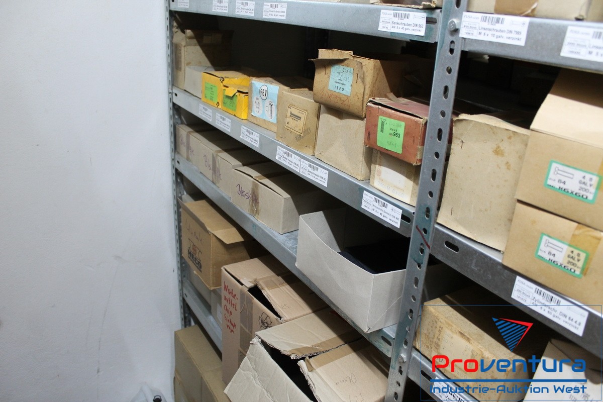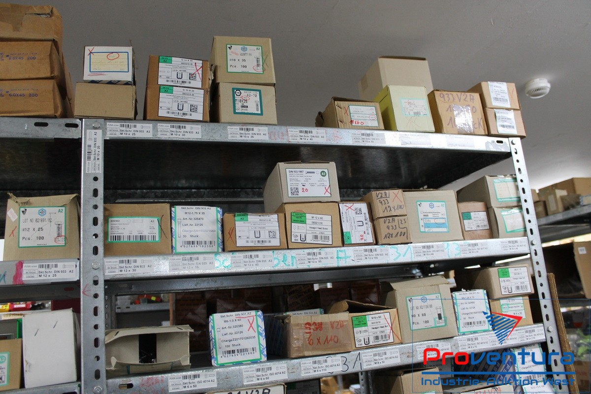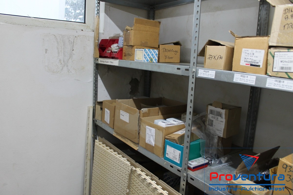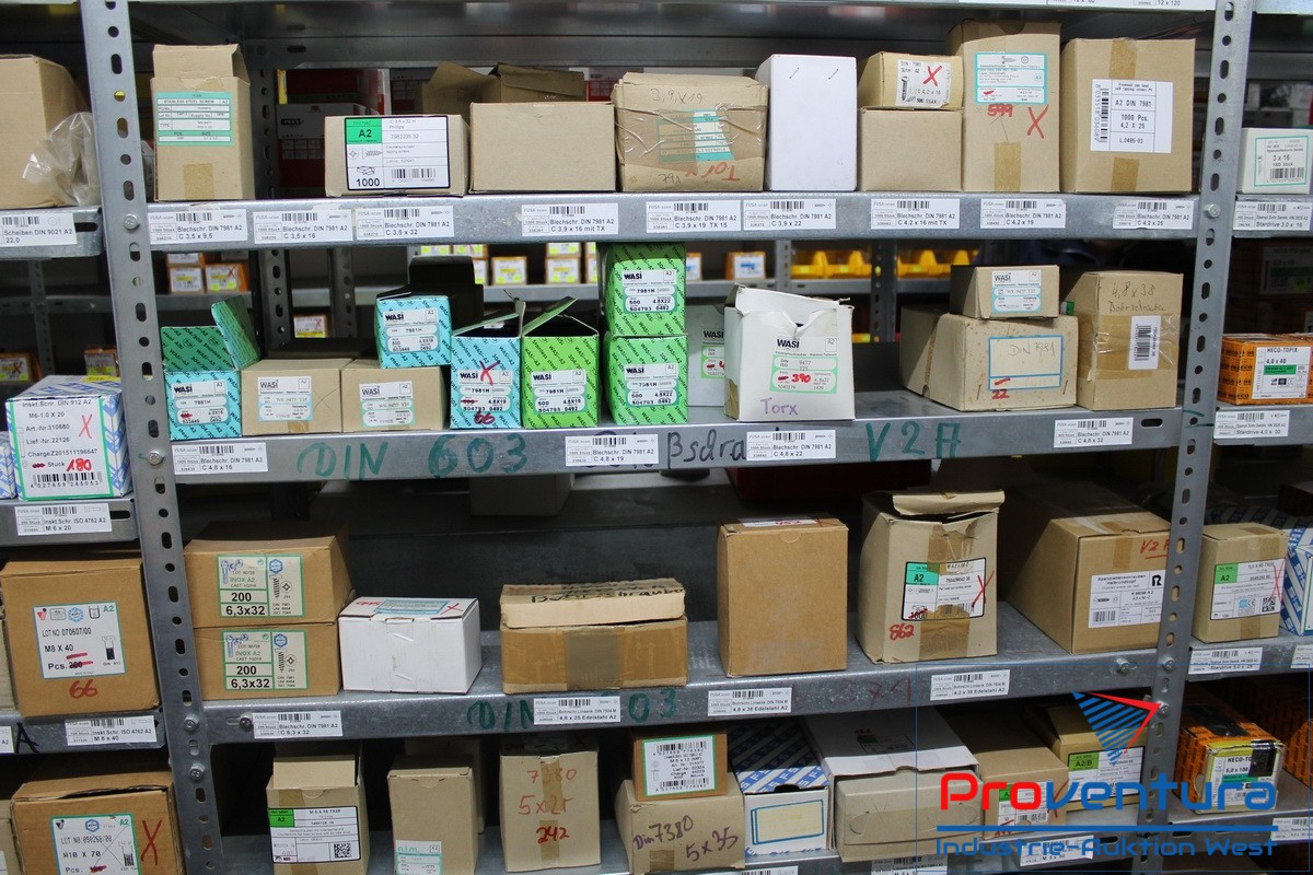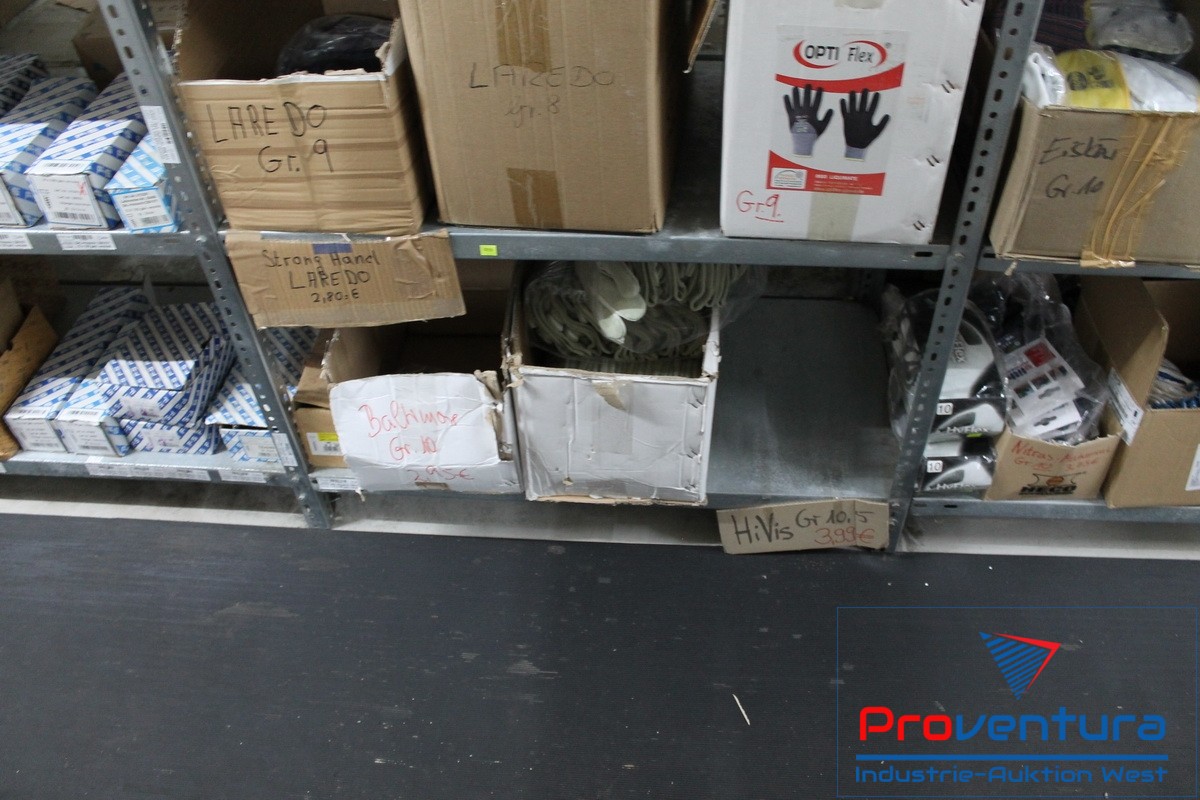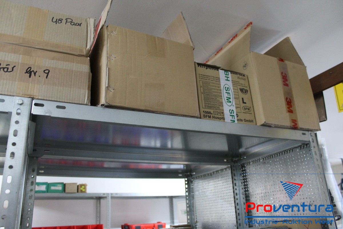 Warenbestände, lagernd in 49 Regalen, Schweißdraht, Bohrer, Sägeblätter, Werkzeug, Wasserwagen, Ketten, Spanngurte, Drahtbürsten, Stecknüsse, Feilen, Imbusschlüssel, Meißel, Metallwinkel, div. Lochwinkel, Winkelverbinder, Muttern, Sicherungsmuttern, Gewindestangen, Blechschrauben, Unterlegscheiben, Federringe, Schrauben, teilw, Edelstahl, Dübel FISCHER und UPAT, Nägel, Trennscheiben, Schleifbänder, Handschuhe in div. Ausführungen und Größen, Kabelbinder, Gehörschutz, Schellen, 120 l Frostschutzmittel, Einschlagmuttern, Bauschaum, Lecksuchspray, Pistolenschaum, Schmiermittel, Markierungsspray, Schraubensicherung, Bohr- und Schneidöl, Silikon, Kriechöl, Bremsenreiniger, Maurerschnur, teilw. in Sortimentskästen, Toilettenpapier, Werbemittel, Umfang siehe Fotos und Video, die als PDF hinterlegte Inventurliste zeigt nur die Art der Artikel, Vollständigkeit kann nicht gewährleistet werden. Kunde muss pünktlich zur Abholung erscheinen um das Regal auszuräumen.