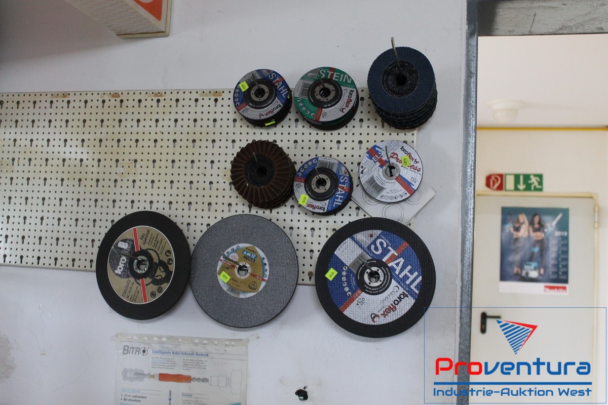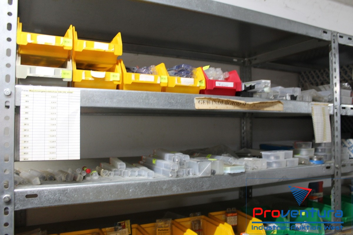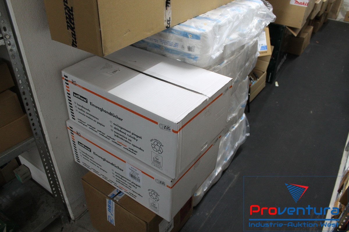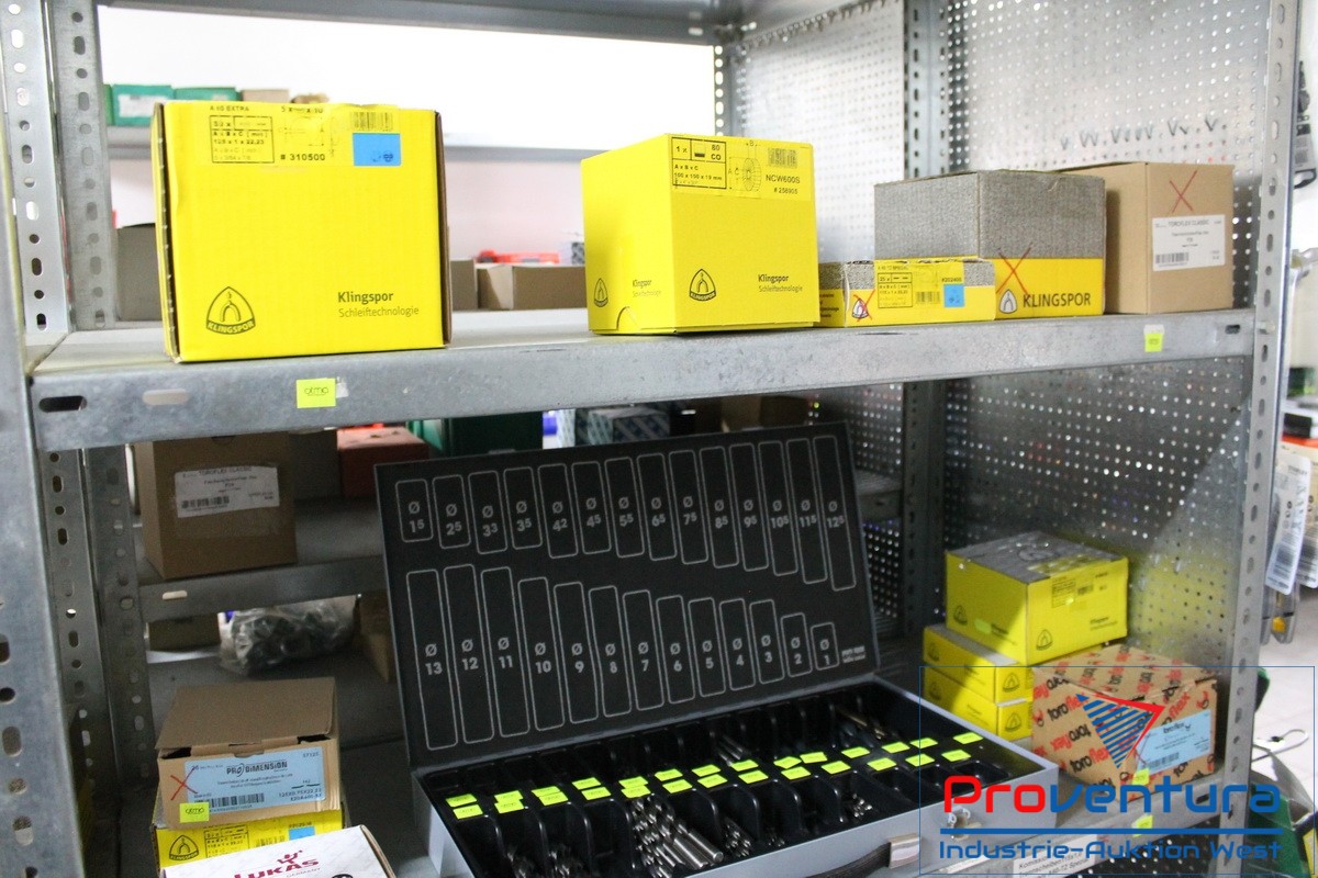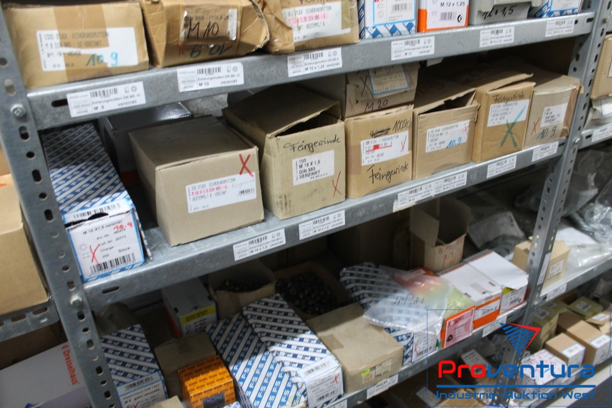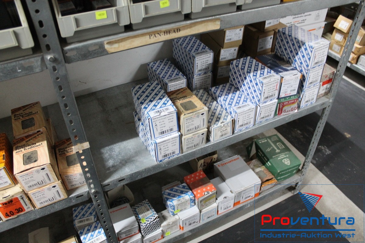 Warenbestände, lagernd in 49 Regalen, Schweißdraht, Bohrer, Sägeblätter, Werkzeug, Wasserwagen, Ketten, Spanngurte, Drahtbürsten, Stecknüsse, Feilen, Imbusschlüssel, Meißel, Metallwinkel, div. Lochwinkel, Winkelverbinder, Muttern, Sicherungsmuttern, Gewindestangen, Blechschrauben, Unterlegscheiben, Federringe, Schrauben, teilw, Edelstahl, Dübel FISCHER und UPAT, Nägel, Trennscheiben, Schleifbänder, Handschuhe in div. Ausführungen und Größen, Kabelbinder, Gehörschutz, Schellen, 120 l Frostschutzmittel, Einschlagmuttern, Bauschaum, Lecksuchspray, Pistolenschaum, Schmiermittel, Markierungsspray, Schraubensicherung, Bohr- und Schneidöl, Silikon, Kriechöl, Bremsenreiniger, Maurerschnur, teilw. in Sortimentskästen, Toilettenpapier, Werbemittel, Umfang siehe Fotos und Video, die als PDF hinterlegte Inventurliste zeigt nur die Art der Artikel, Vollständigkeit kann nicht gewährleistet werden. Kunde muss pünktlich zur Abholung erscheinen um das Regal auszuräumen.