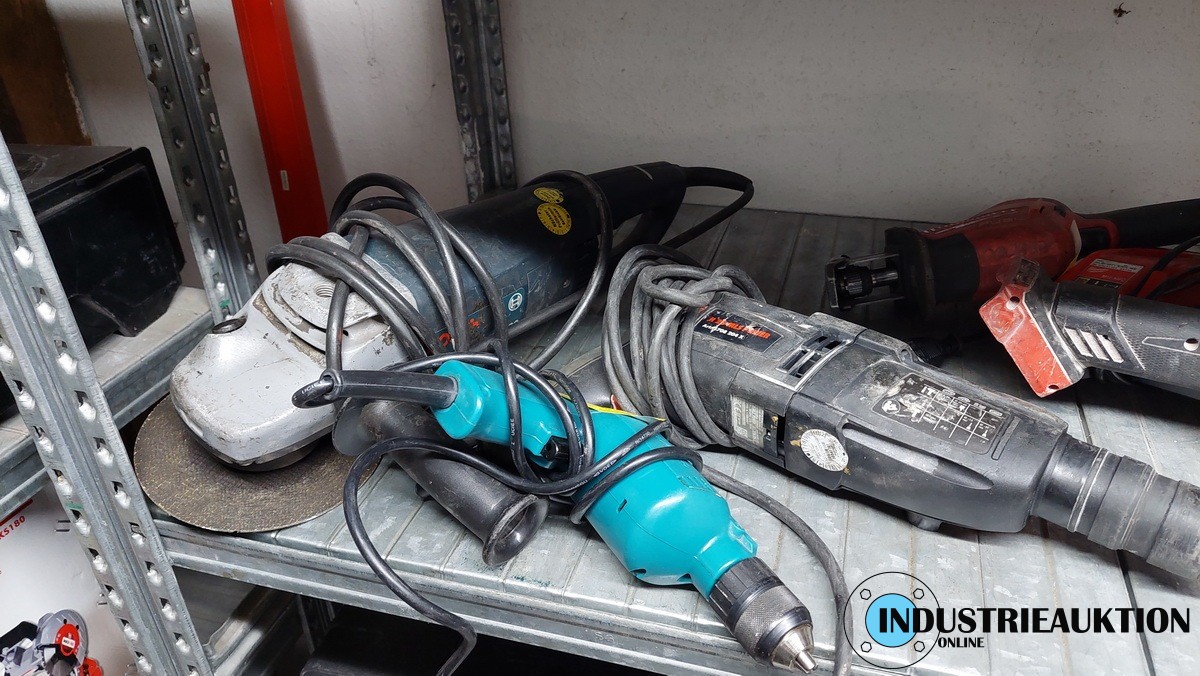 Winkelschleifer BOSCH 230mm, Bohrschrauber MAKITA, Schlagbohrmaschine WÜRTH H23 MLS Power, Fuchsschwanzsäge