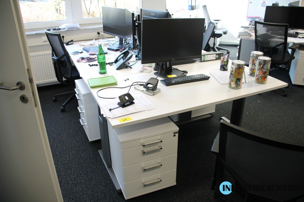 3 Schreibtische; 3 Container, 3 Bürodrehstühle, Highboard, Aktenschrank