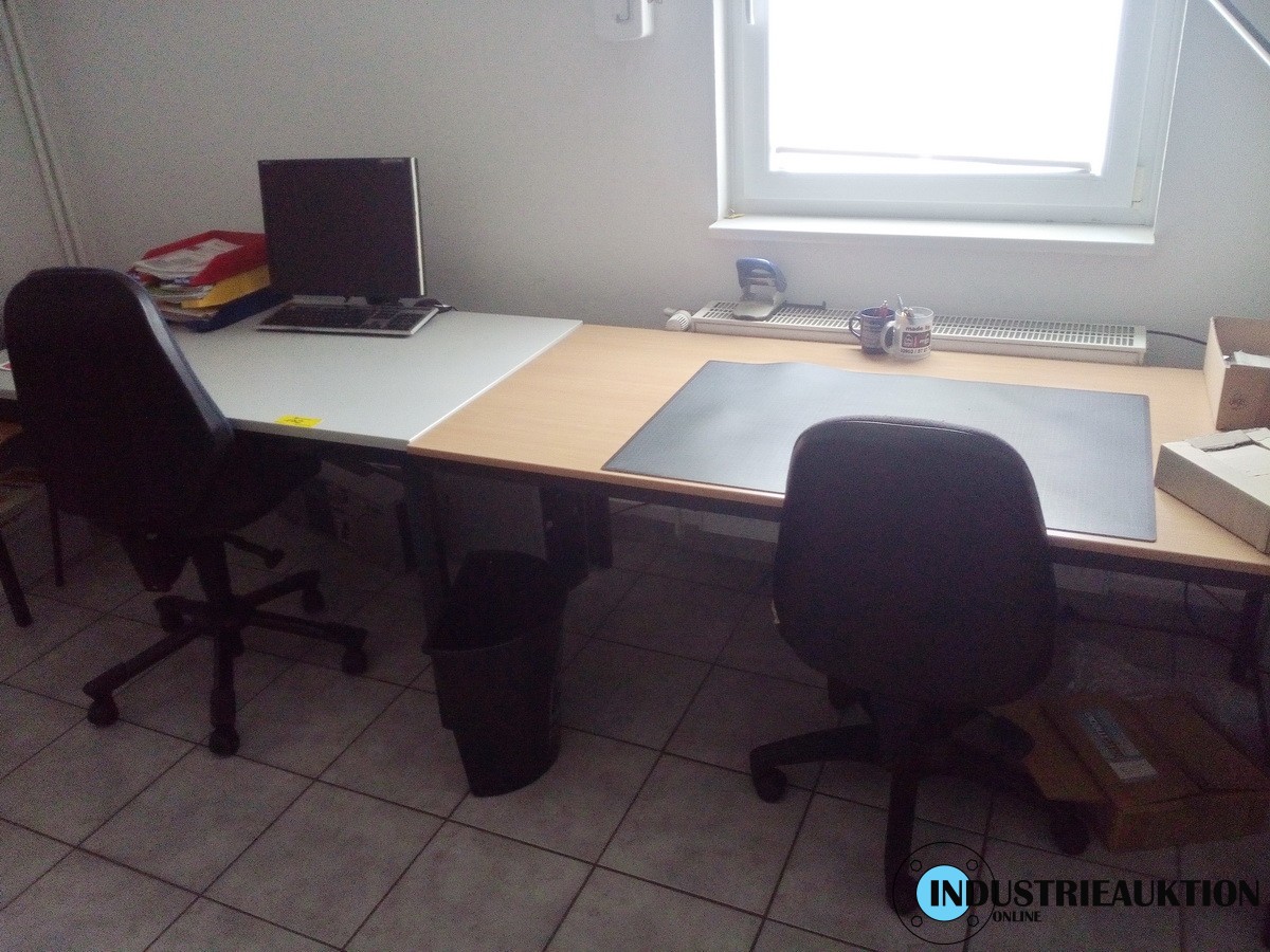 Arbeitstische, 2 St. weiß u. hellbraun jeweils mit Bürostuhl