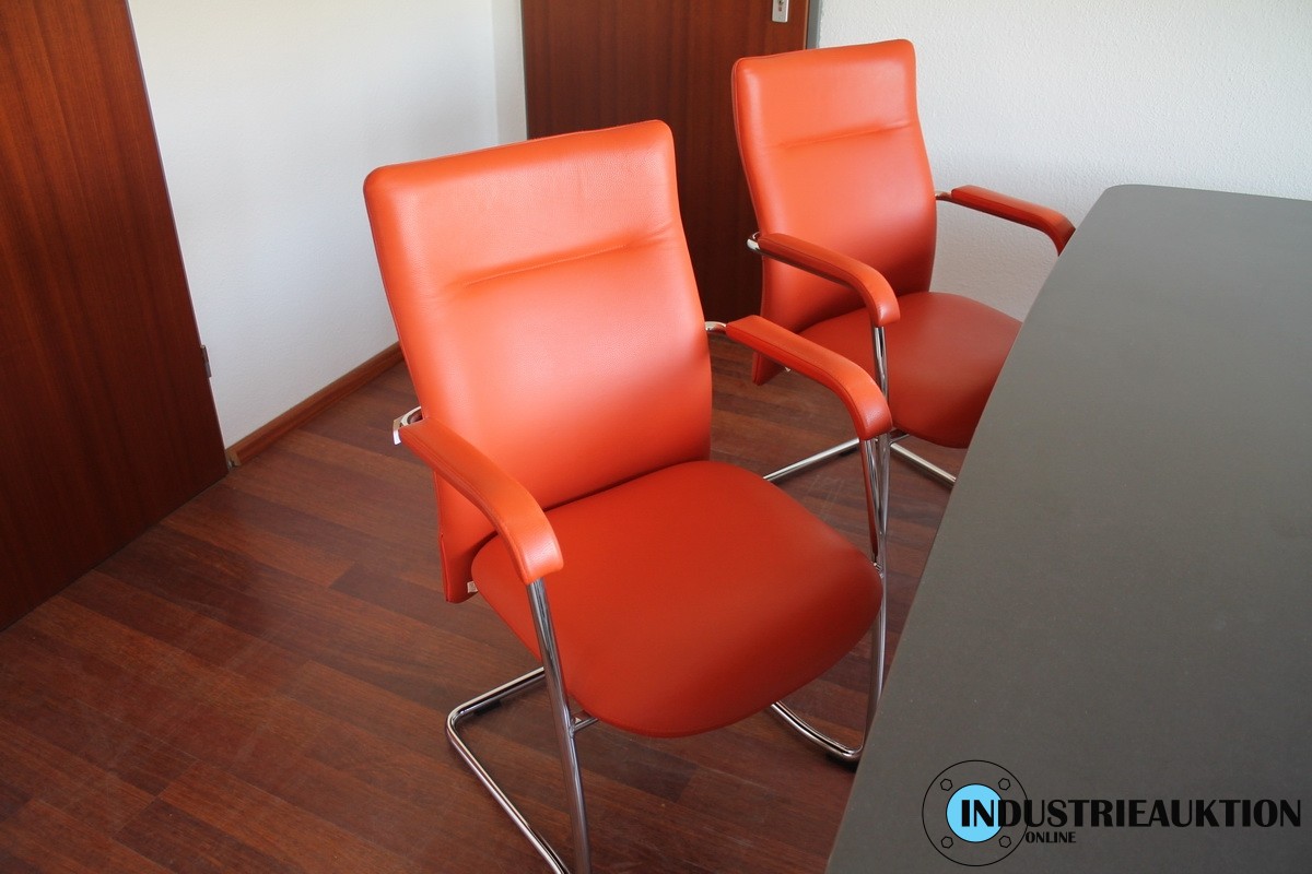 Besprechungsstühle, 4 St., Kunstleder orange, Freischwinger Chromrahmengestell