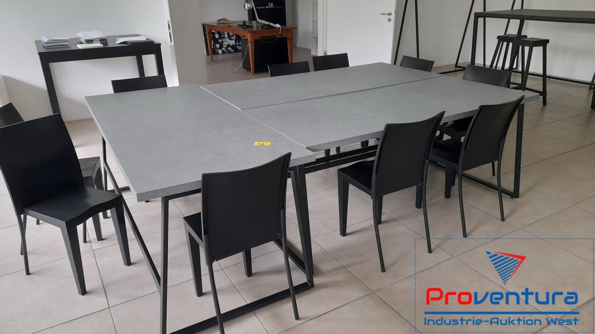 Besprechungstische, 3 St., je ca. 200x80 cm, grau, 10 Stühle KARTELL, schwarz