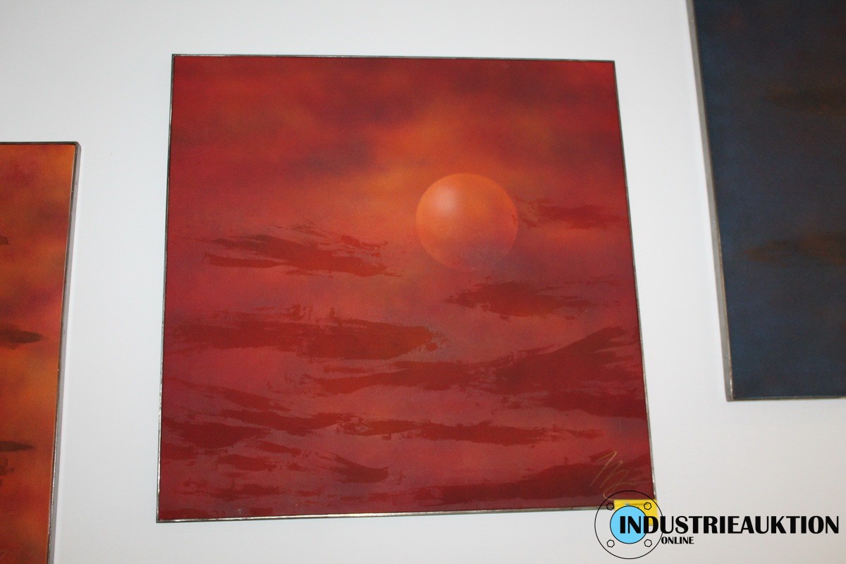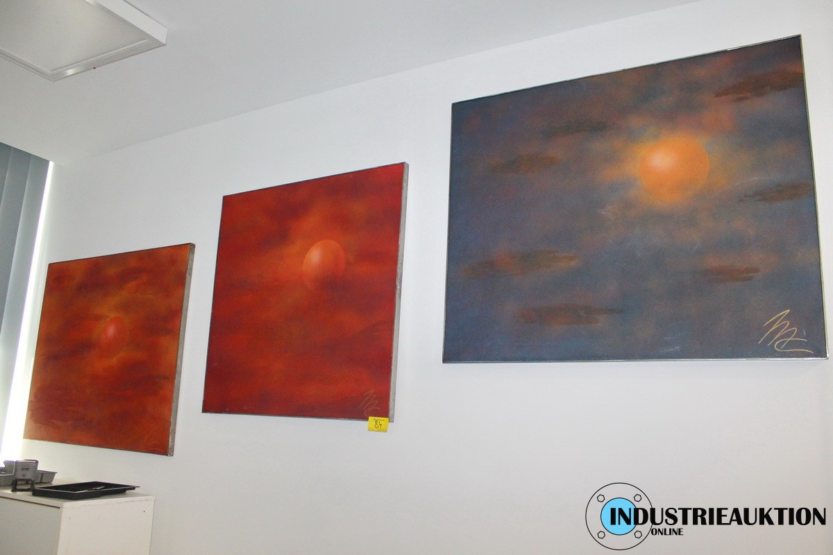 Bilder 3 St. Künstler unbekannt, ca. 80 x 100 cm, Nachthimmel mit Vollmond