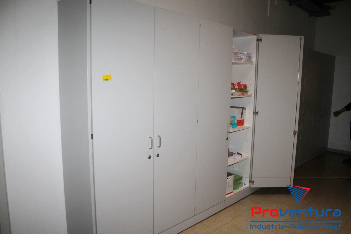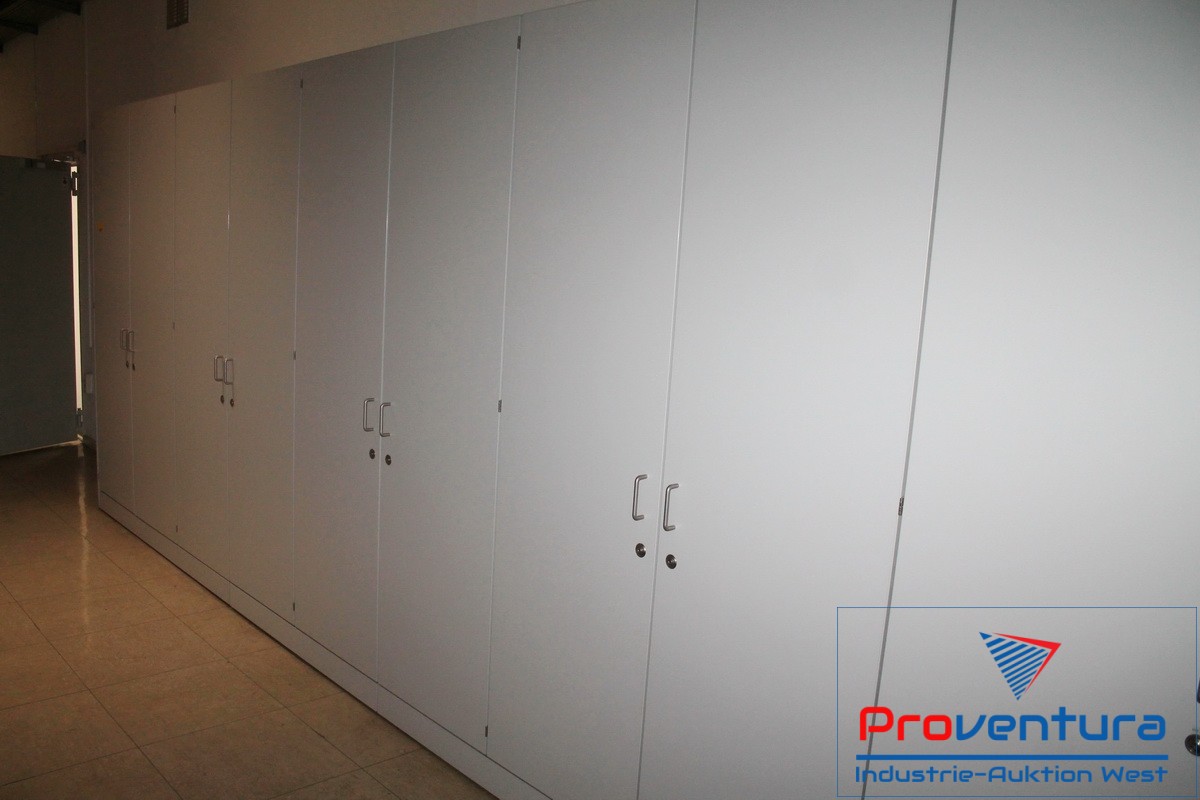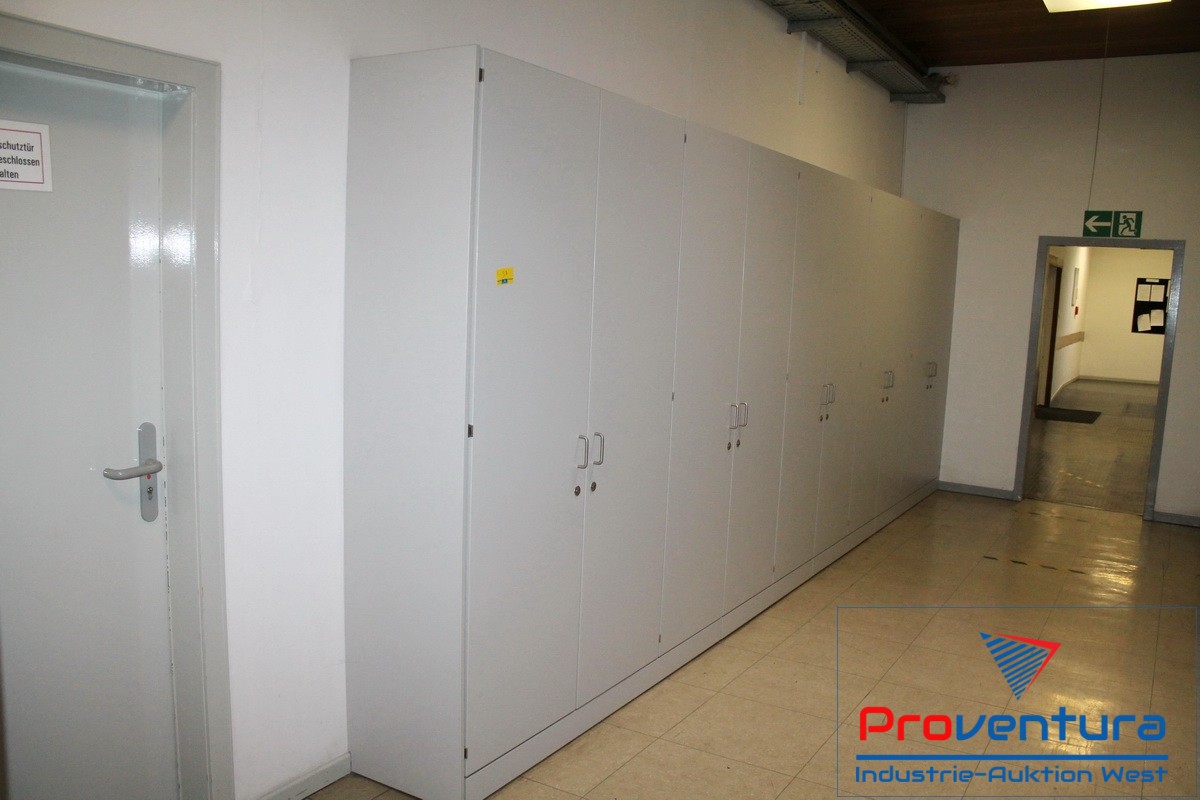 Büroschrankwand, Länge ca. 600 cm, Höhe ca. 230 cm, Inhalt Restbestände Papier usw.