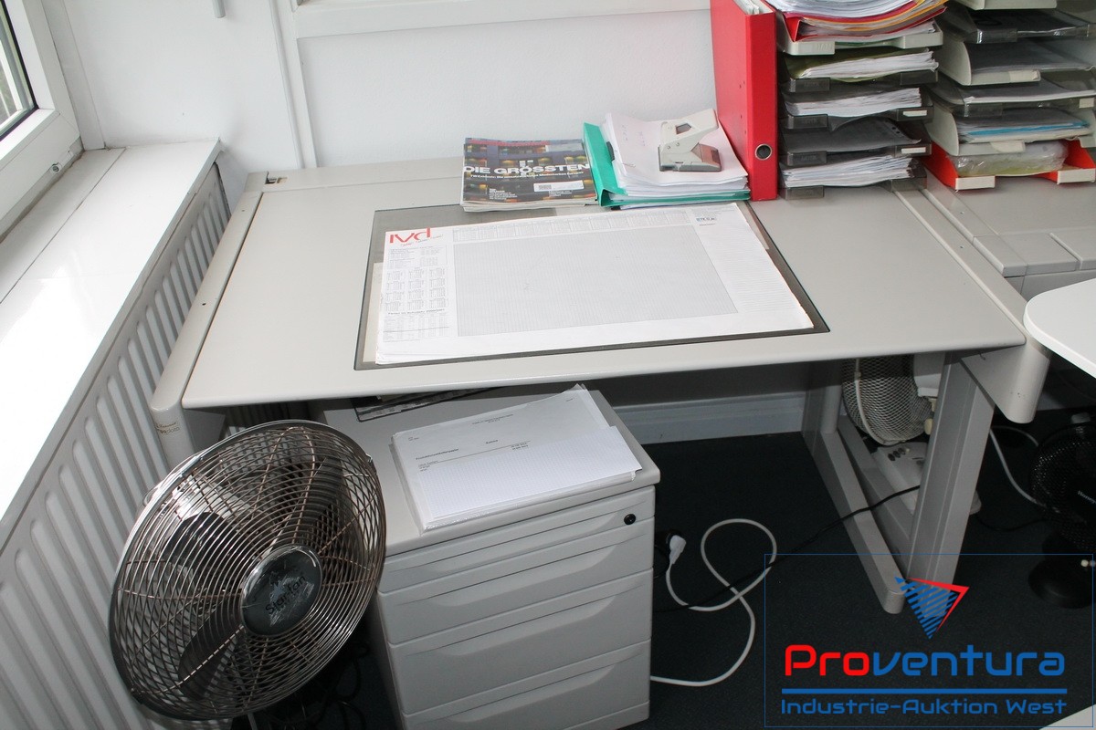 Restrauminhalt, 2 Terminaltische, älter, Schreibtischcontainer, Büroschrank, Büroregale, Aktenkarussell