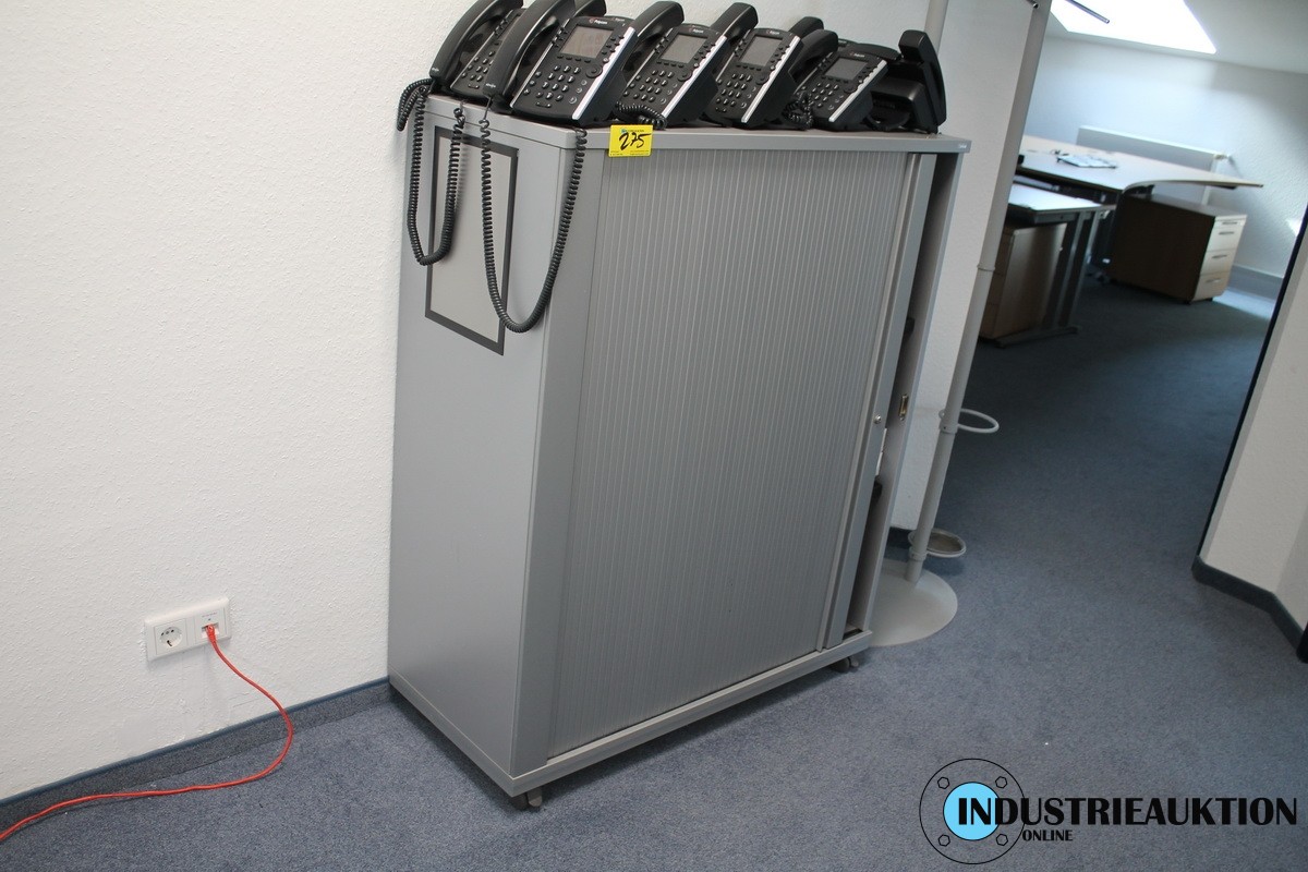 Schrank, Silber mit Rolltür, fahrbar