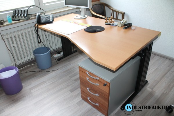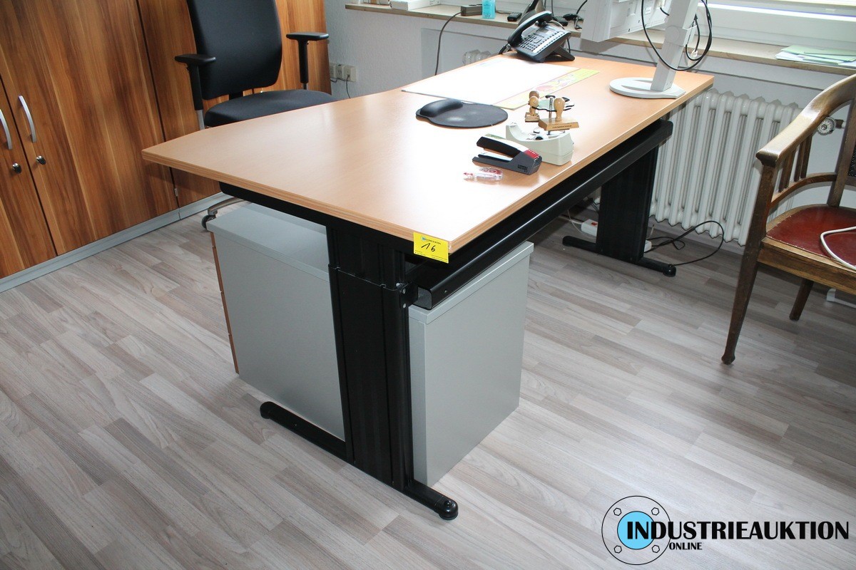 Schreibtisch PALMBERG, buchefarbige Platte, Schreibtischcontainer, Breite ca. 160, Tiefe ca. 100 cm