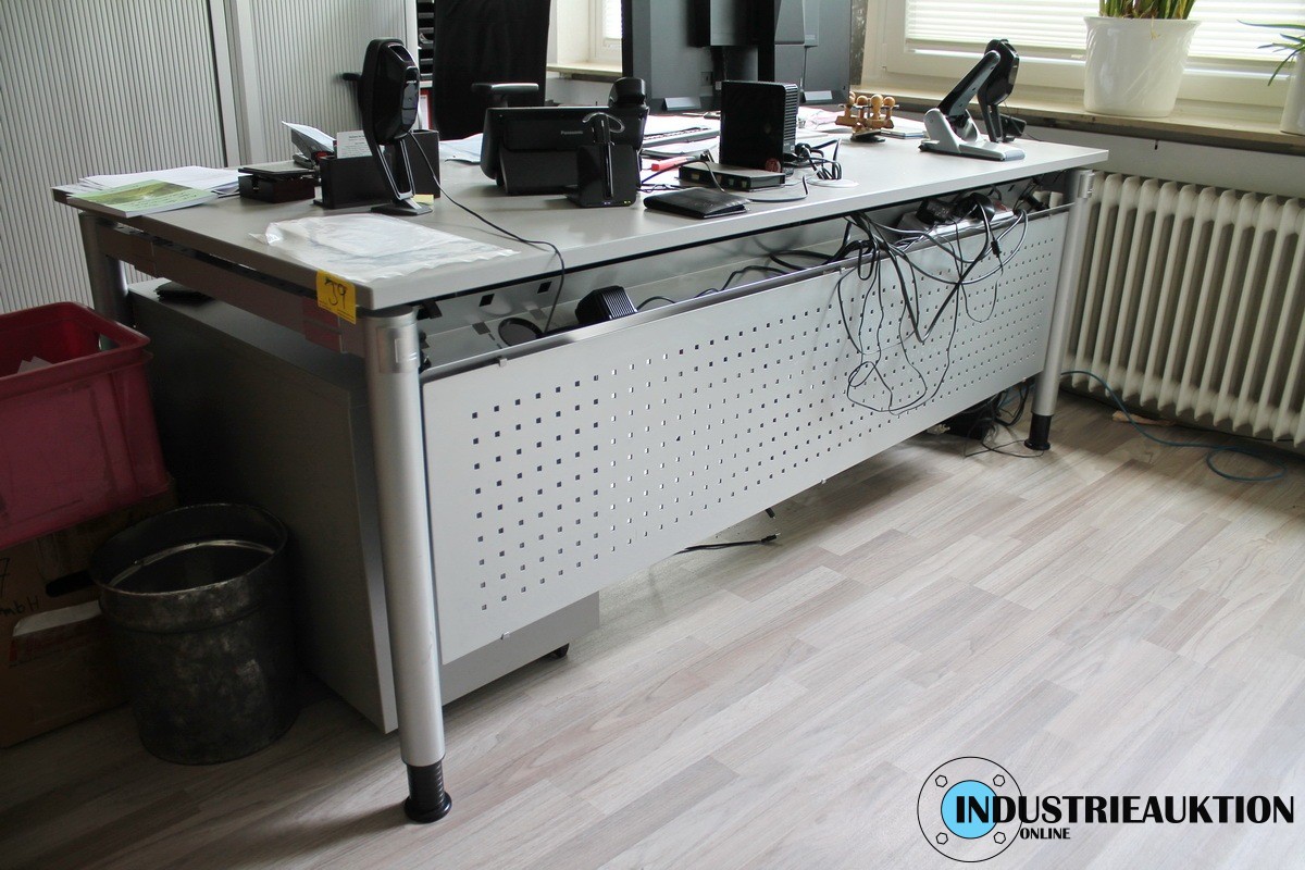 Pos. 039 - Schreibtisch PALMBERG silbergrau mit Rollcontainer