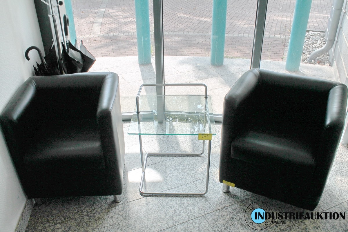 Sessel, 2 St., Kunstleder schwarz, Glastisch
