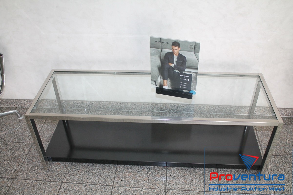 Stehtisch Aluminium, ø ca. 60 cm, Höhe ca. 130 cm, Glastisch, verchromt, ca. 50x150 cm