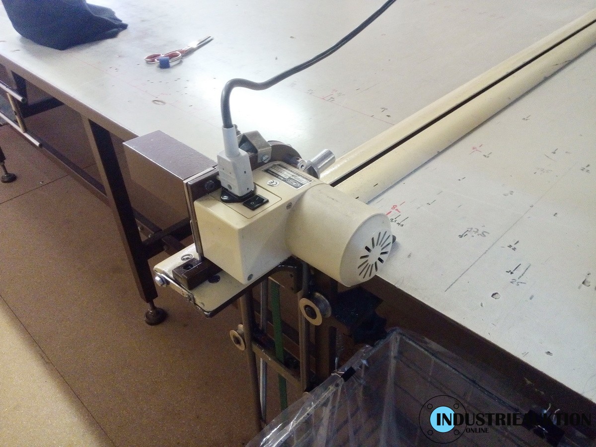 Stoffschneidetisch, ca. 600x250 cm, mit Abrollvorrichtung, el. Kreismesser
