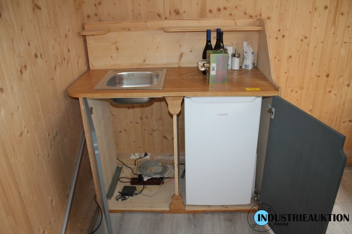 Thekenelement Eigenbau, Breite ca. 120 cm, Holz mit Spülbecken, Haushaltskühlschrank, BOMANN mit Gefrierfach