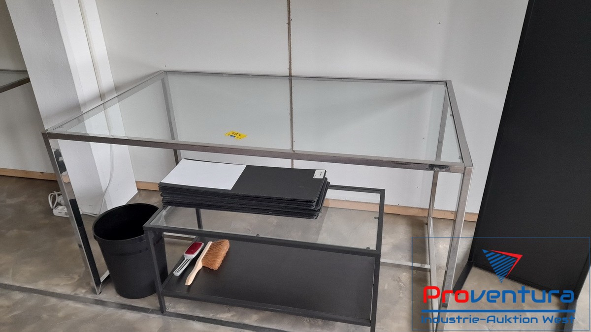 Tische, 2 St., Edelstahl- bzw. Chromgestell, Glasplatten, Größe ca. 150 bzw. 180x90 cm