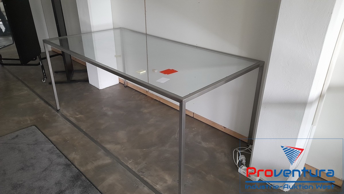 Tische, 2 St., Edelstahl- bzw. Chromgestell, Glasplatten, Größe ca. 150 bzw. 180x90 cm