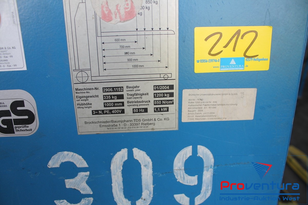 Palettenheber BUTLER 1200; 3 St., Bj. 04, Tragkraft 1,2 t, Hubhöhe 100 cm, 380V