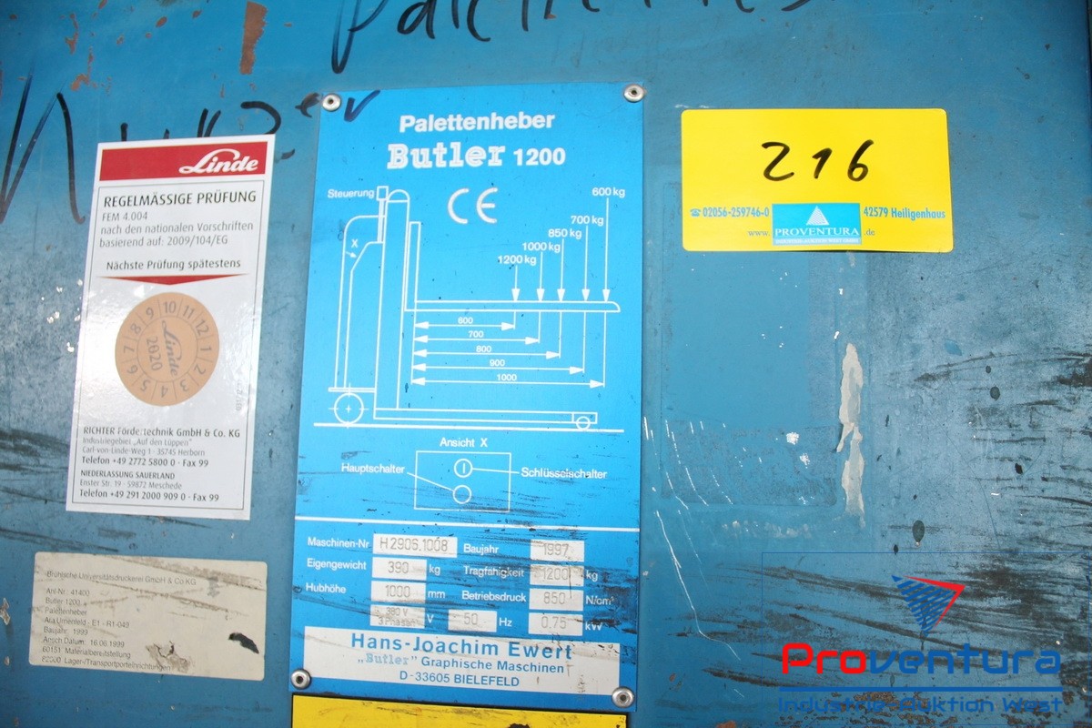 Pos. 216 - Palettenheber BUTLER 1200; Bj. 97