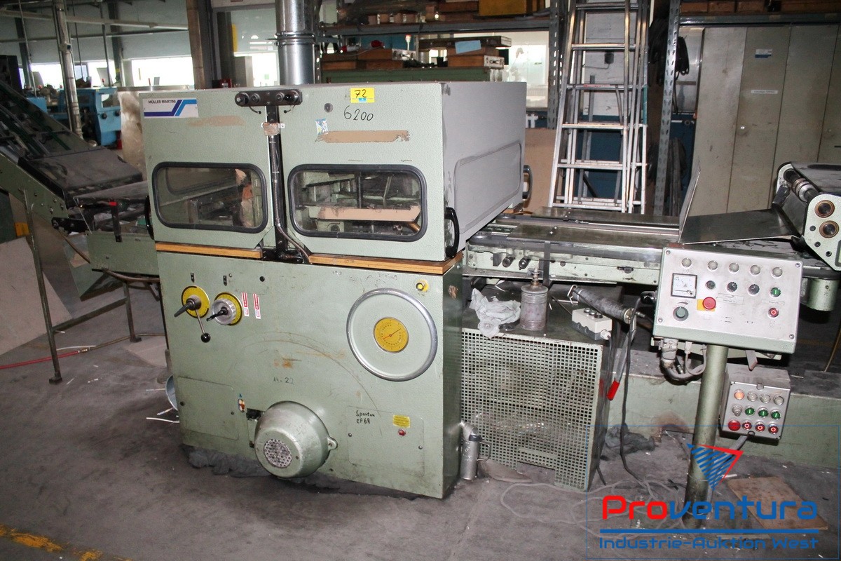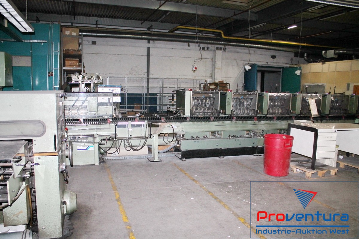 Sammelhefter MÜLLER MARTINI 235; Bj. 79, mit 7 Stationen, Zusammentragstation, Heftstation, Dreischneider, Kreuzleger, 1 Anlegestation separat stehend, einsatzbereit
