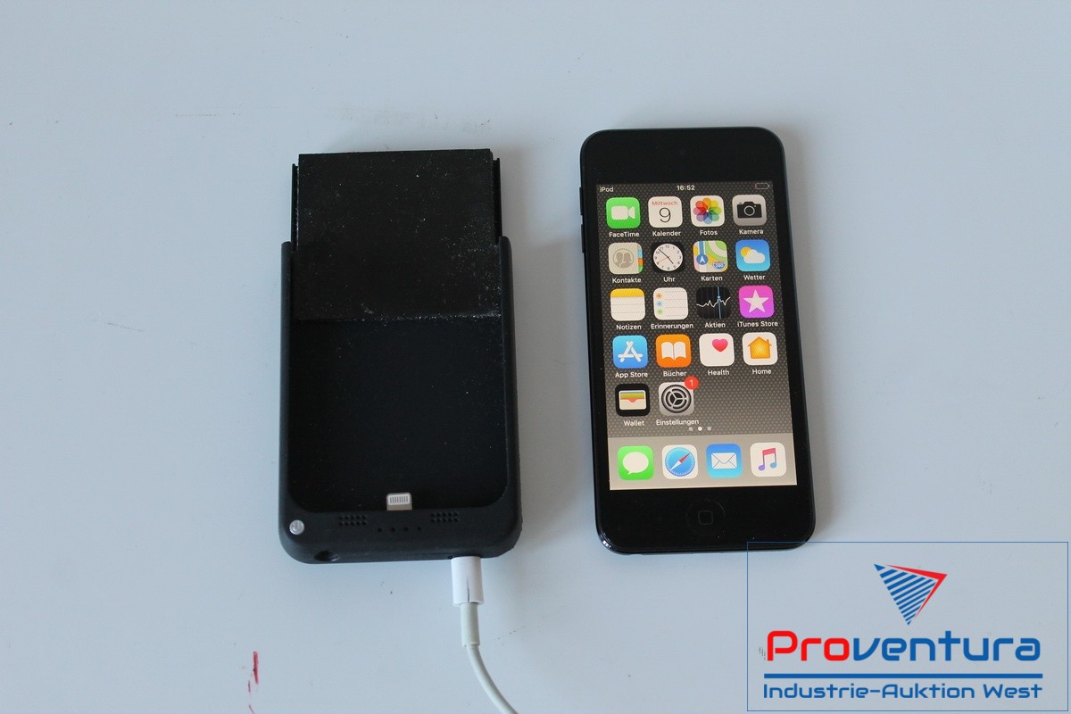 iPod touch A1574, 6. Gen. 32 GB, iSight-Kamera, FaceTime-HD-Kamera, dazu Halterung mit integr. Powerbank 2.200 mAh